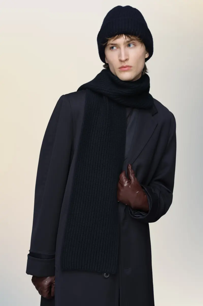 Minimalista pero a la vez suave, esta bufanda acanalada está confeccionada en cachemir puro para ofrecer calidez y suavidad. Sus bordes limpios y proporciones gráficas resaltan la interacción entre estructura y simplicidad. Las cuatro puntadas, el sello distintivo de Maison Margiela, aparecen en el centro; lo opuesto a una etiqueta.