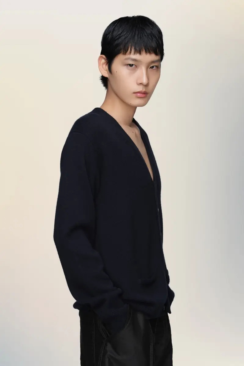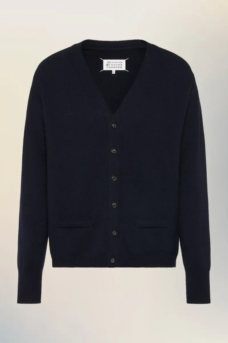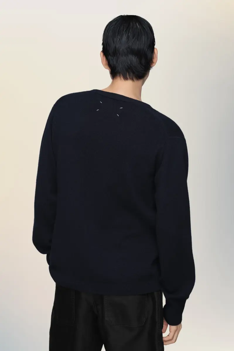Este cárdigan refleja el enfoque minimalista de Maison Margiela para sus prendas básicas tradicionales. Con escote en V, botones a tono y ribetes acanalados, su simplicidad permite que su confección hable por sí sola. Las cuatro puntadas, el sello distintivo de Maison Margiela, aparecen en la espalda; lo opuesto a una etiqueta.