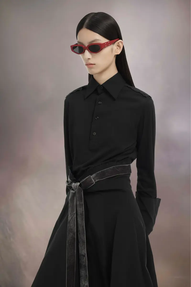 La tercera colaboración Maison Margiela x Gentle Monster surge de la intersección del diseño clásico y futurista. Las gafas de sol MM205 LEATHER LR1 presentan un acabado efecto cuero, con líneas rectas y curvas. El distintivo de Maison Margiela, las Cuatro Puntadas, aparece en las patillas; lo opuesto a una etiqueta.