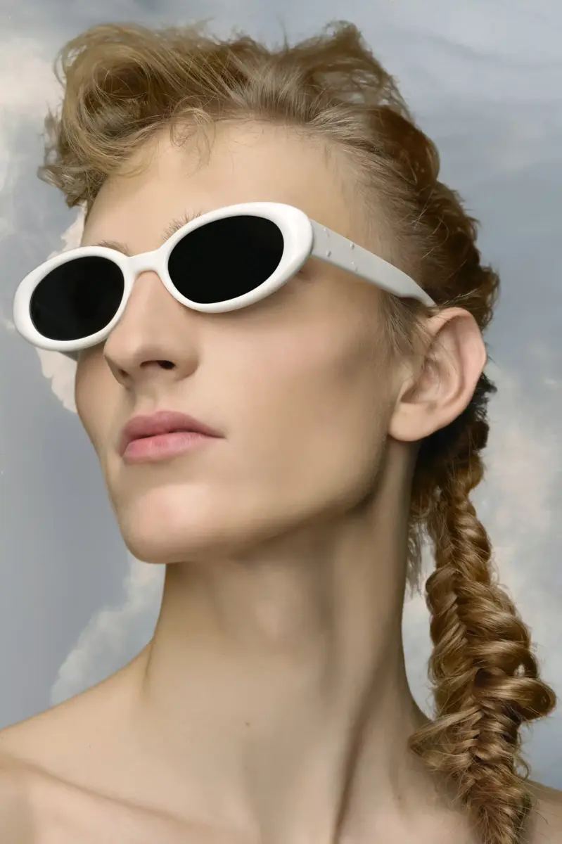 La colaboración Maison Margiela x Gentle Monster presenta los diseños originales de la marca de gafas, que incorporan detalles de las cuatro puntadas distintivas de la Maison en la patilla; lo opuesto a una etiqueta. El MM107 es un modelo ovalado y robusto, disponible en acetato. Su diseño refleja la creencia compartida de ambas marcas en la artesanía experimental.