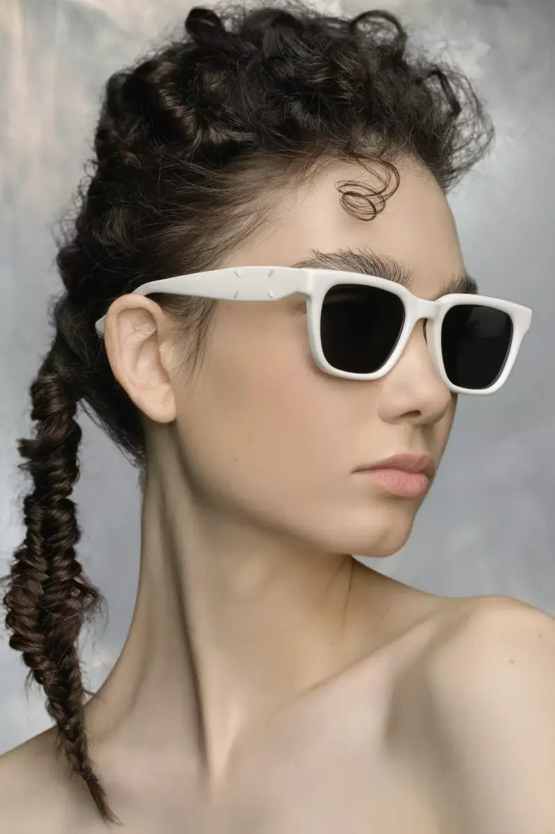 La colaboración Maison Margiela x Gentle Monster presenta los diseños originales de la marca de gafas, que incorporan detalles de las cuatro puntadas distintivas de la Maison en la patilla; lo opuesto a una etiqueta. Como muestra de la creencia compartida de ambas marcas en la artesanía experimental, el MM110 es un modelo refinado y rectangular, disponible en acetato.
