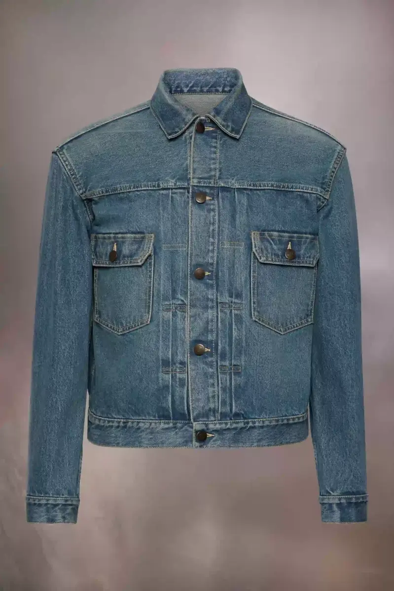 Esta chaqueta vaquera ajustada presenta bolsillos abotonados en el pecho y costuras visibles con pliegues en los laterales de la tapeta. El distintivo de Maison Margiela, las cuatro puntadas, aparece en la espalda; lo opuesto a una etiqueta. Composición: 100 % algodón. Chaqueta vaquera de origen de 14 oz. Cierre de botones. Bolsillos de solapa abotonados. Puños abotonados. Cintura ajustable. Cuatro puntadas en la espalda. Hecho en Italia.