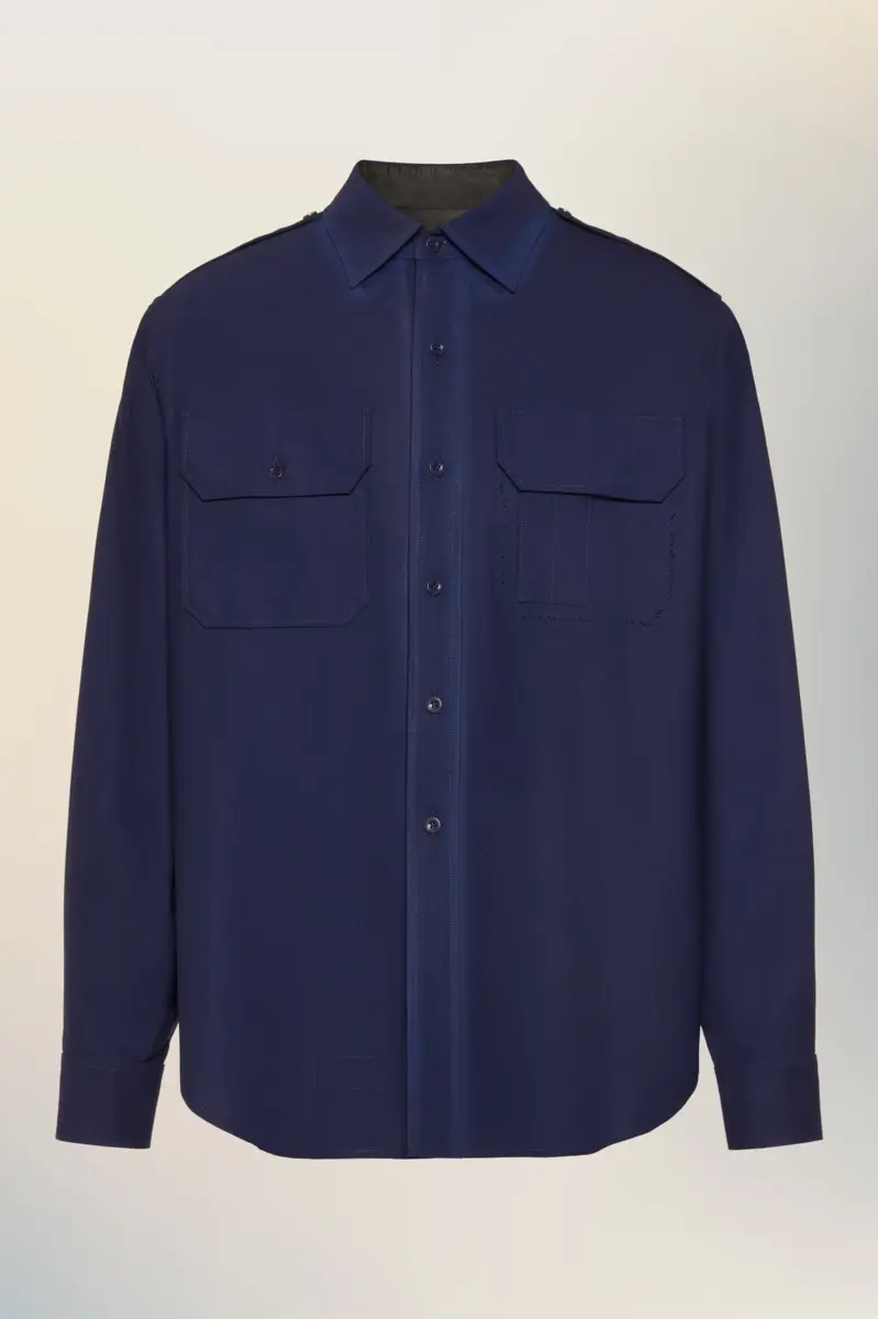 Sobrecamisa de lana con cuello en punta y charreteras
