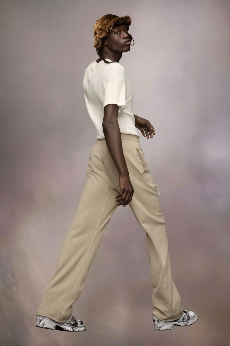 Confeccionada en algodón, esta camiseta acanalada es larga y ajustada, con cuello redondo. En el pecho, se aprecia la etiqueta vacía con el nombre de Margiela, con dos puntos de cruz en contraste. La firma de Maison Margiela, las cuatro puntadas, aparece en la espalda; lo opuesto a una etiqueta.