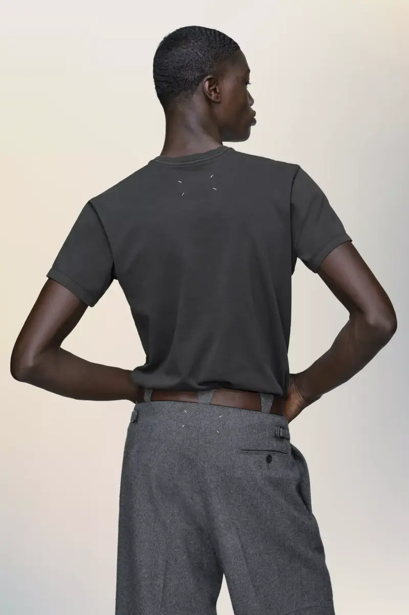 Confeccionada en jersey de algodón, esta camiseta de cuello redondo combina la sencillez con un toque característico. El pecho lleva estampado el gráfico «Maison Margiela — I’m a fan», que reinterpreta sutilmente el logotipo de la camiseta. Las cuatro puntadas de Maison Margiela aparecen en la espalda; lo opuesto a una etiqueta.