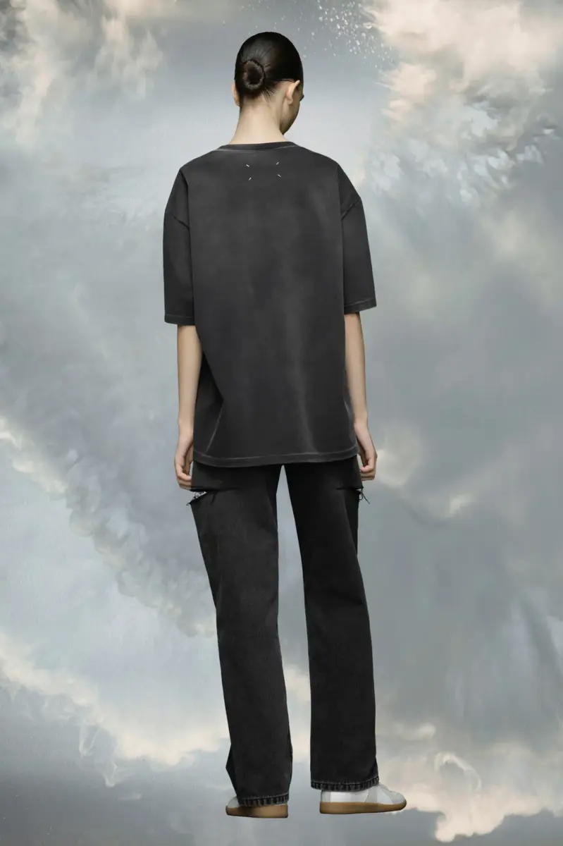 Esta camiseta de jersey grueso luce el logotipo Memory of Margiela con las letras LA aplicadas en el pecho. Tiene un corte holgado. Las cuatro puntadas, el sello distintivo de Maison Margiela, aparecen en la espalda; lo opuesto a una etiqueta.