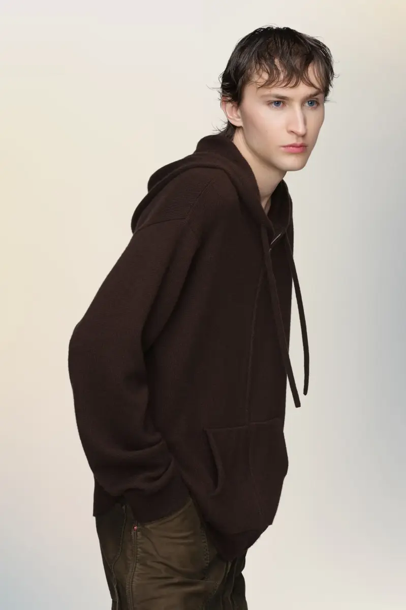 Sudadera de punto con capucha y cremallera en suave cachemira