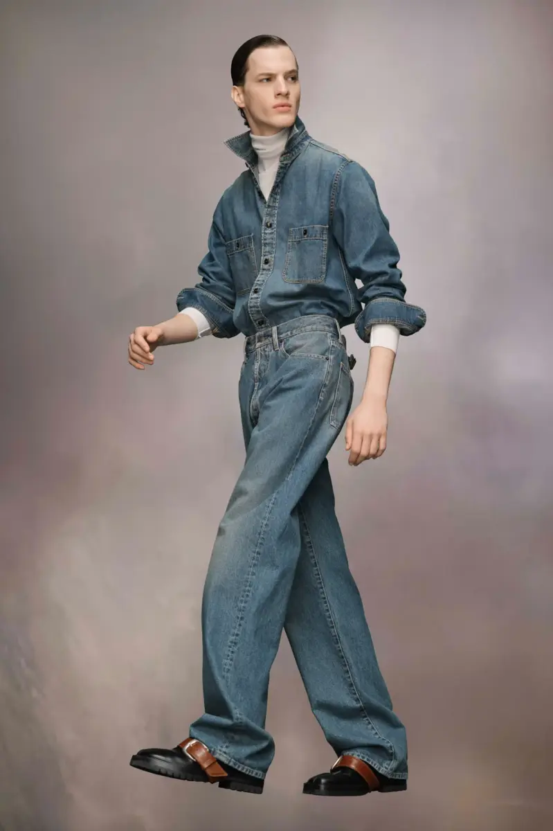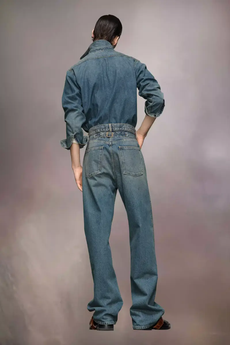 Con amplios bajos vueltos, estos vaqueros presentan cinco bolsillos y una hebilla trasera para un ajuste ajustable. Se completan con el gancho Margiela, trabillas y un botón. Las cuatro puntadas distintivas de Maison Margiela aparecen en la espalda; lo opuesto a una etiqueta.