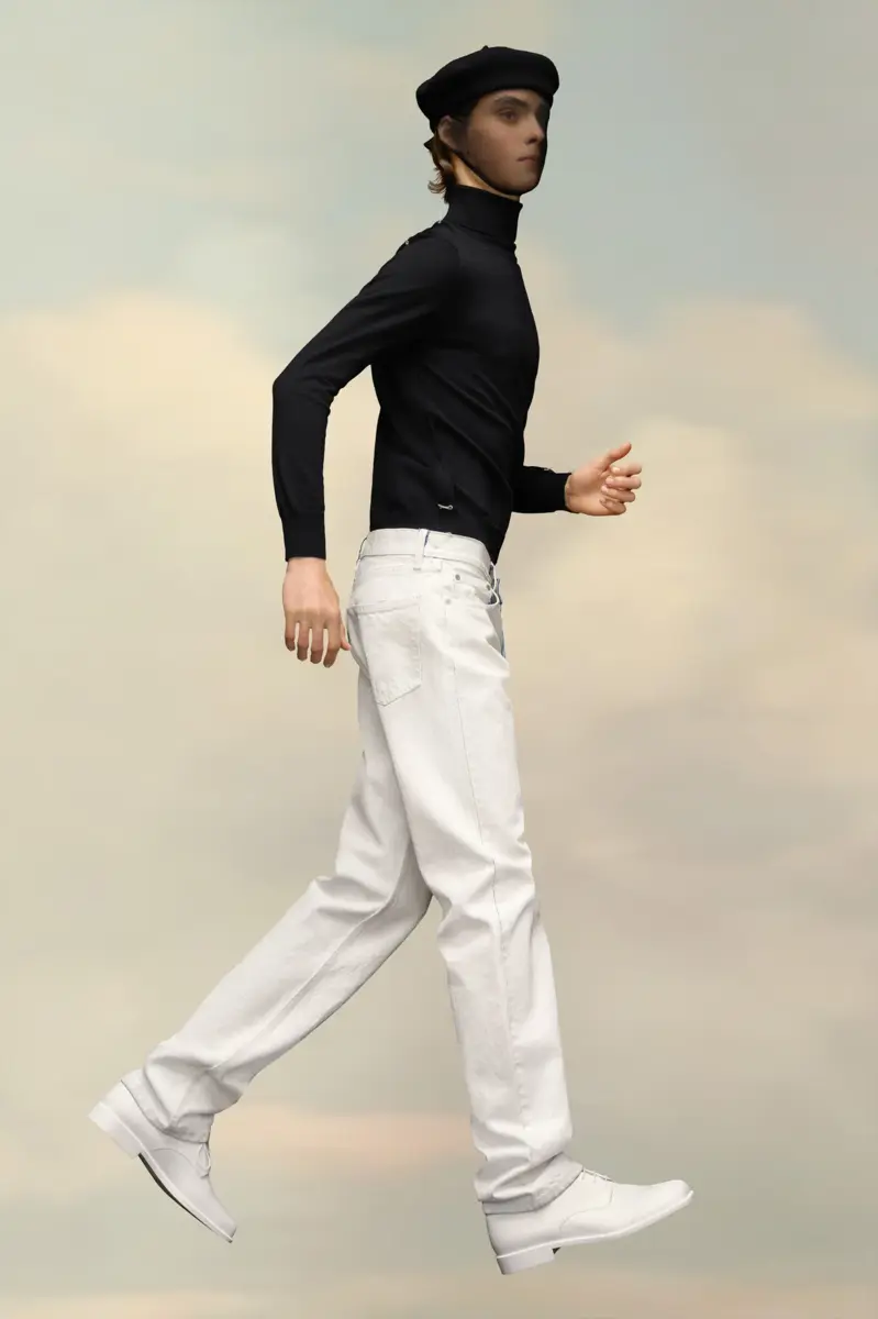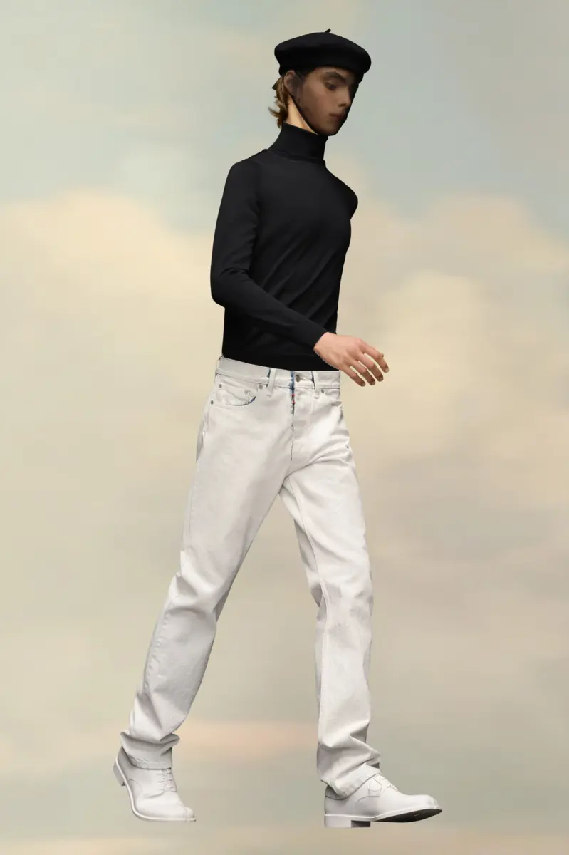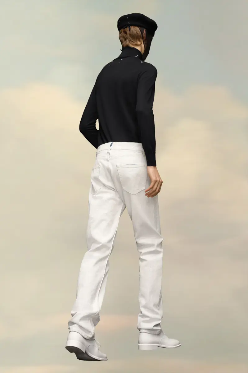 Con el clásico estilo de cinco bolsillos, estos vaqueros de pierna recta presentan cuatro puntadas en la espalda, mostrando la mano de la Maison: lo opuesto a una etiqueta.