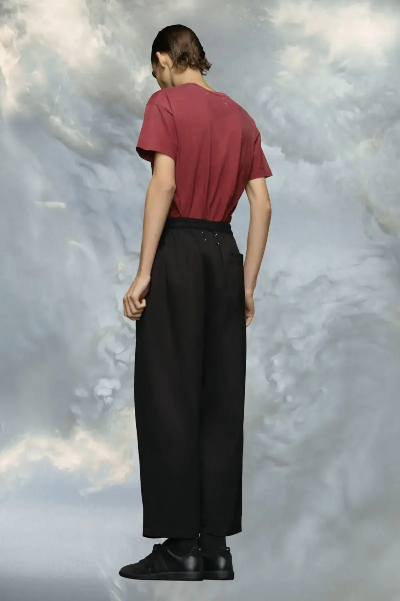 En algodón ligero, estos pantalones presentan cintura elástica y un corte holgado y relajado. Las cuatro puntadas distintivas de Maison Margiela aparecen en la espalda; lo opuesto a una etiqueta.