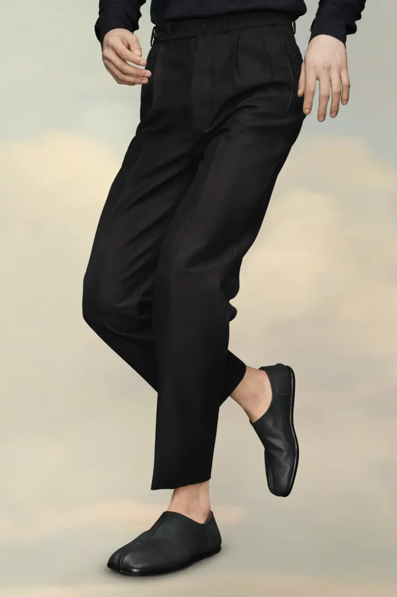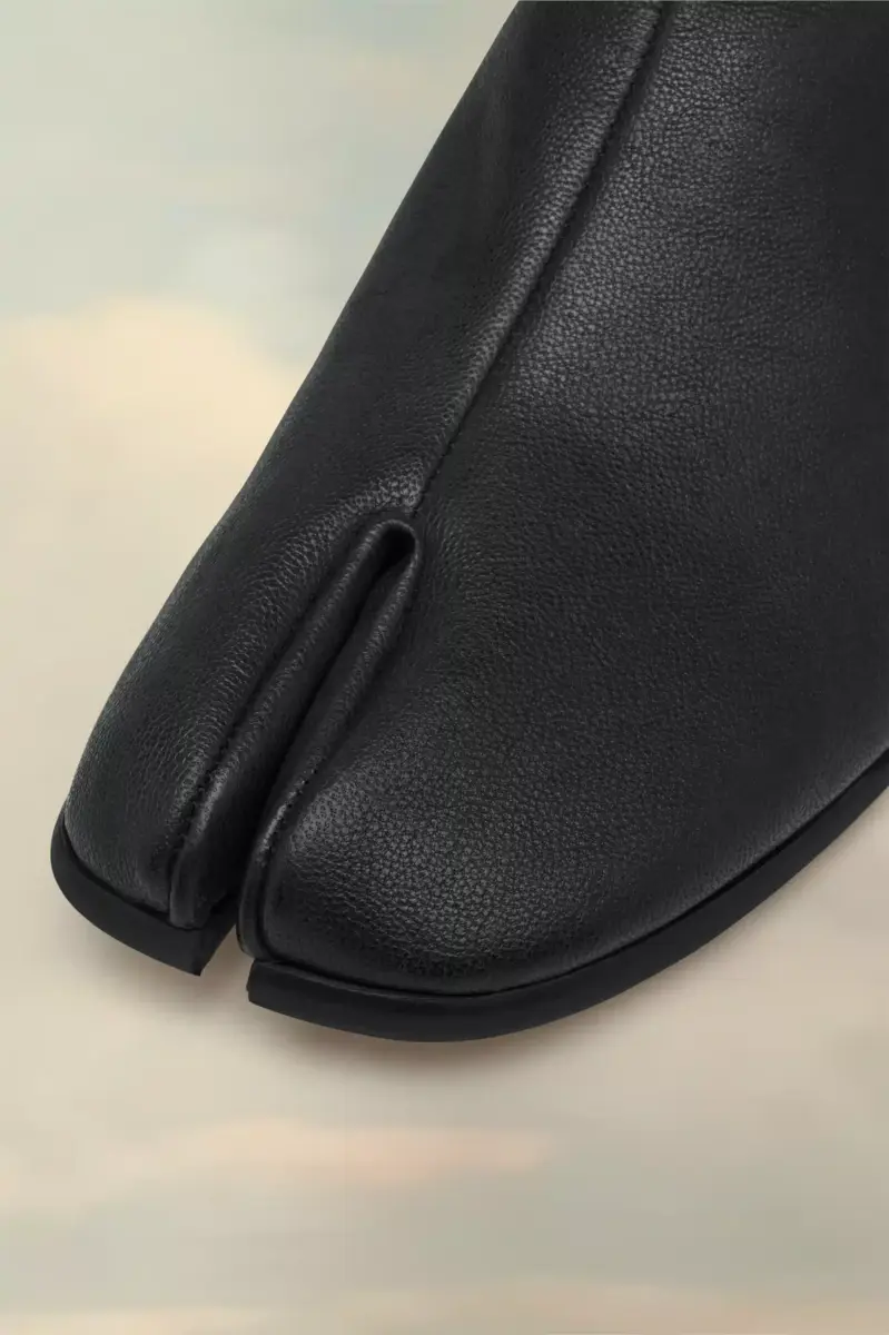 Elaborados en suave piel de napa, los zapatos babucha presentan la puntera dividida Tabi, inspirada en el tradicional calcetín japonés del siglo XV que lleva el mismo nombre, lanzado para la colección de debut de la Maison en 1989. Captura el espíritu vanguardista e insubordinado de la Maison y existe como un clásico heredado, continuamente explorado a través de cada colección.