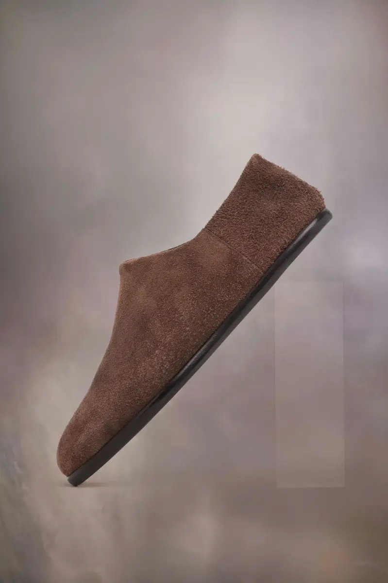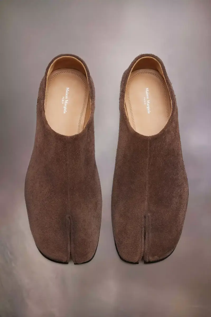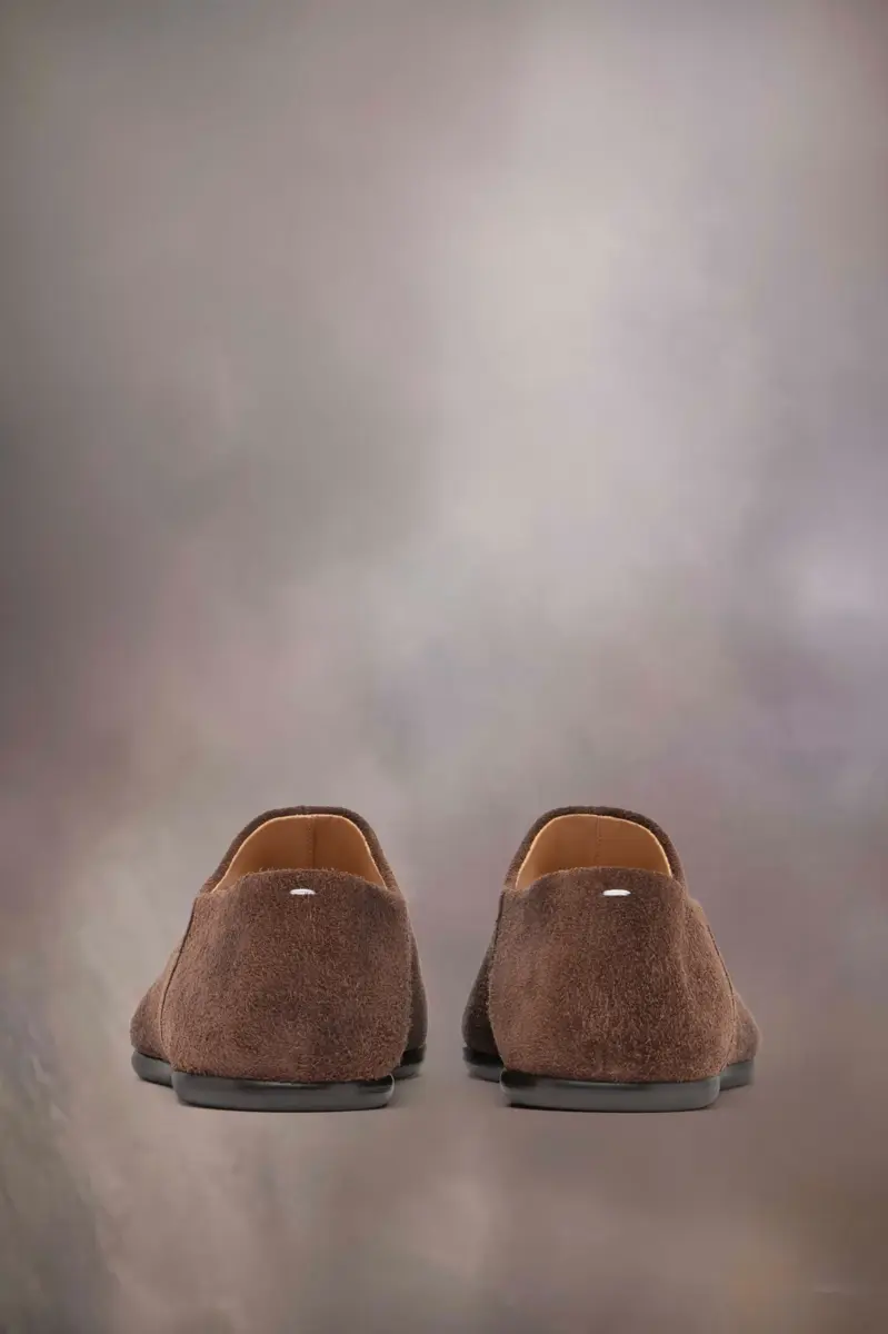 Fabricados en ante, los zapatos babucha presentan la puntera dividida Tabi. Lanzado para la colección debut de la Maison en 1989, inspirado en el tradicional calcetín japonés del siglo XV del mismo nombre, captura el espíritu vanguardista e insubordinado de la Maison. Un clásico de la herencia, explorado continuamente en cada colección. La característica puntada blanca de Maison Margiela aparece en la parte trasera.