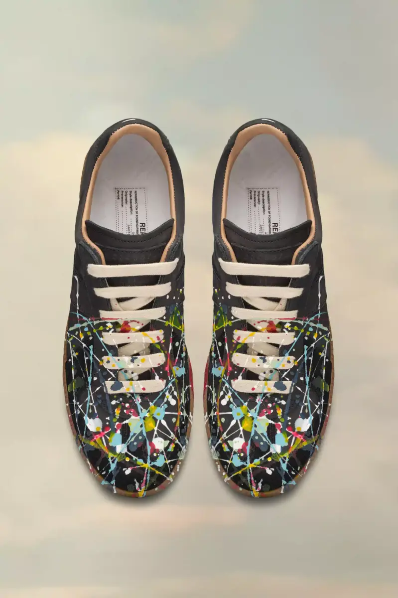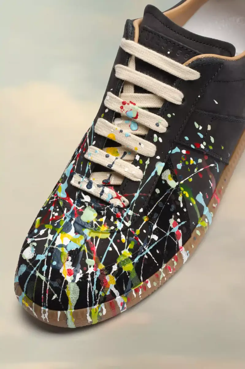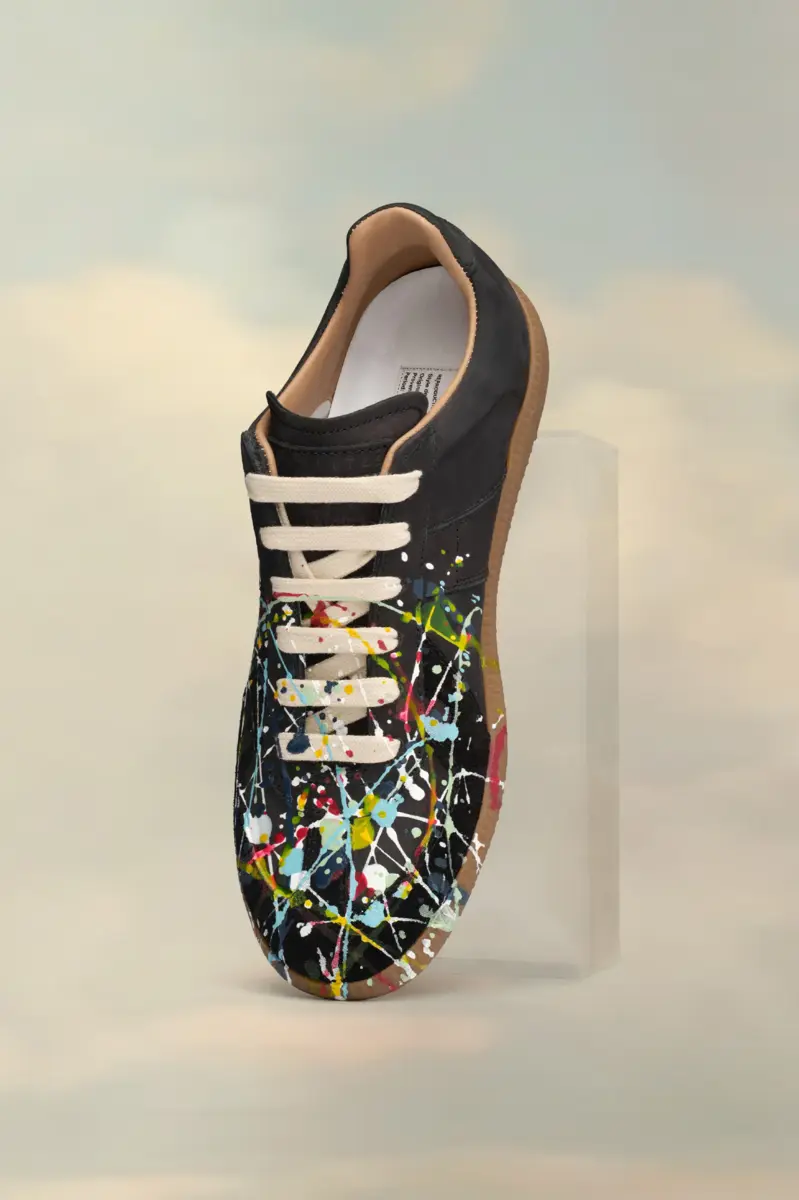Las zapatillas Replica de piel nobuk y terciopelo presentan un diseño con salpicaduras de pintura. Las icónicas zapatillas Replica de la Maison se inspiran en el calzado deportivo austriaco de los años setenta. Los detalles de las Replica se renuevan continuamente según las inspiraciones de la temporada.