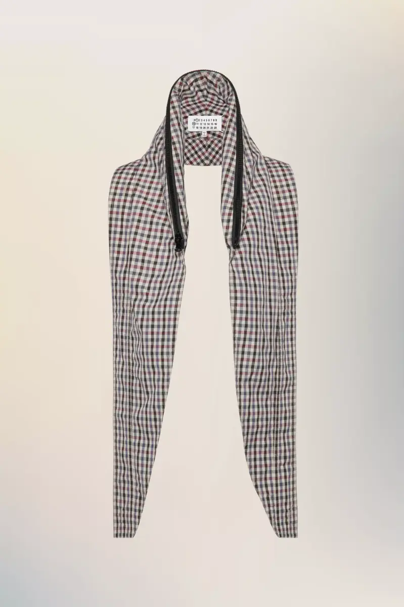 Confeccionado en un tejido ligero e impermeable con un suave acabado arrugado, este pañuelo a cuadros reinterpreta un clásico británico, antaño favorito para actividades en el campo y compromisos reales. Su capucha con cremallera y cordón ajustable ofrecen múltiples opciones de estilo. Las cuatro puntadas, el sello distintivo de Maison Margiela, aparecen en la espalda; lo opuesto a una etiqueta.