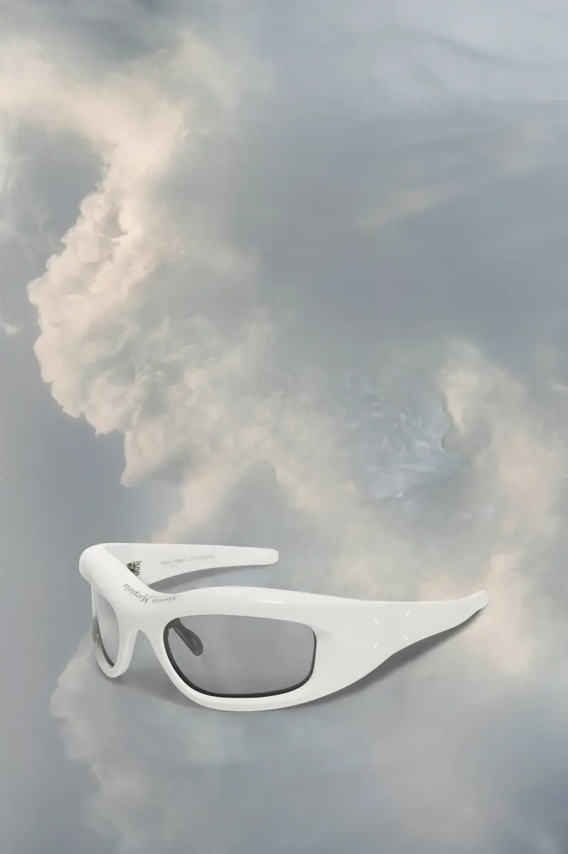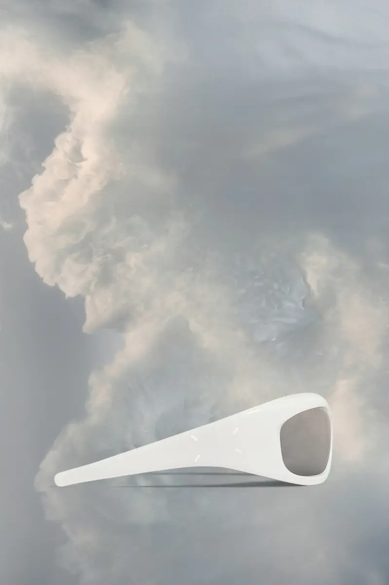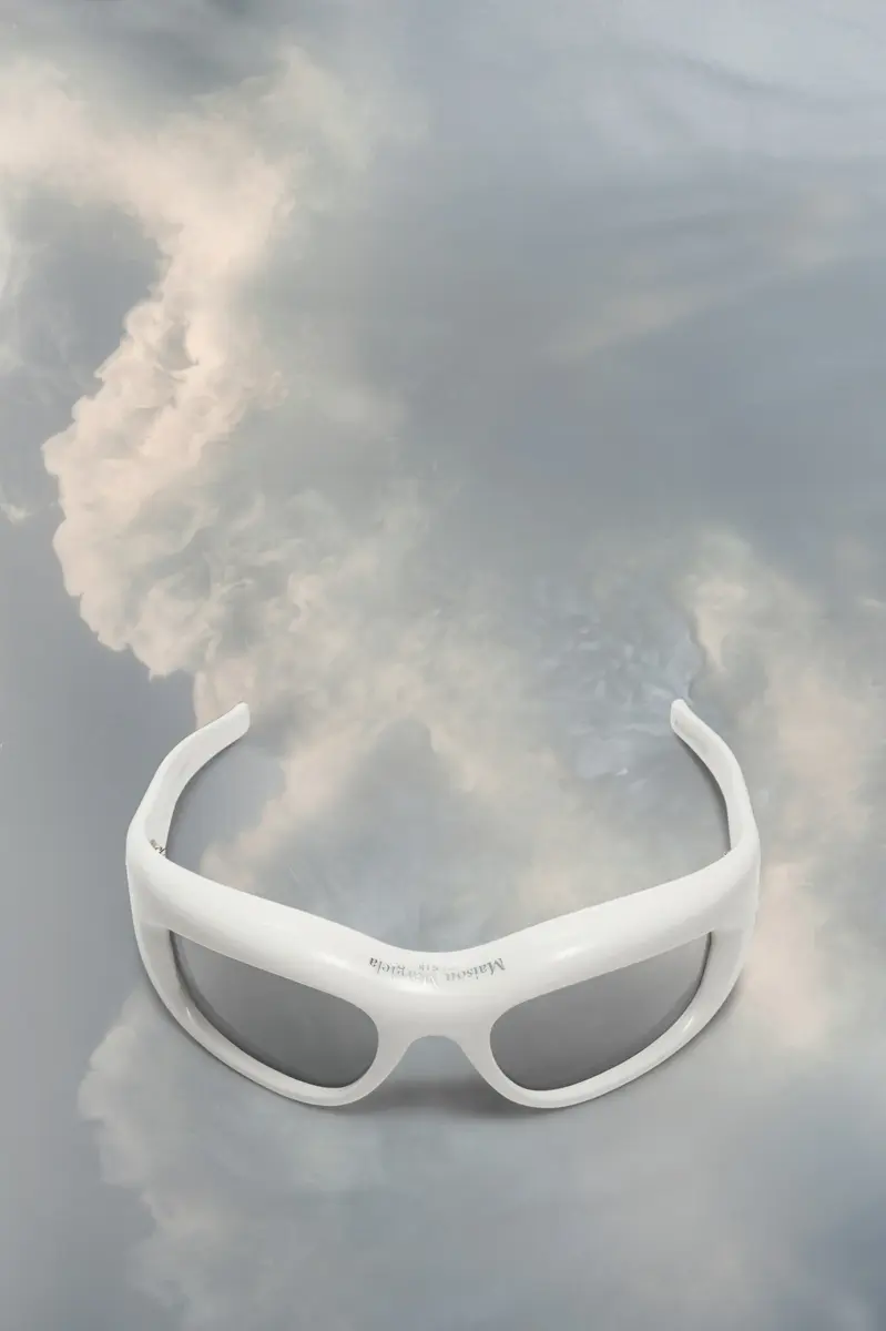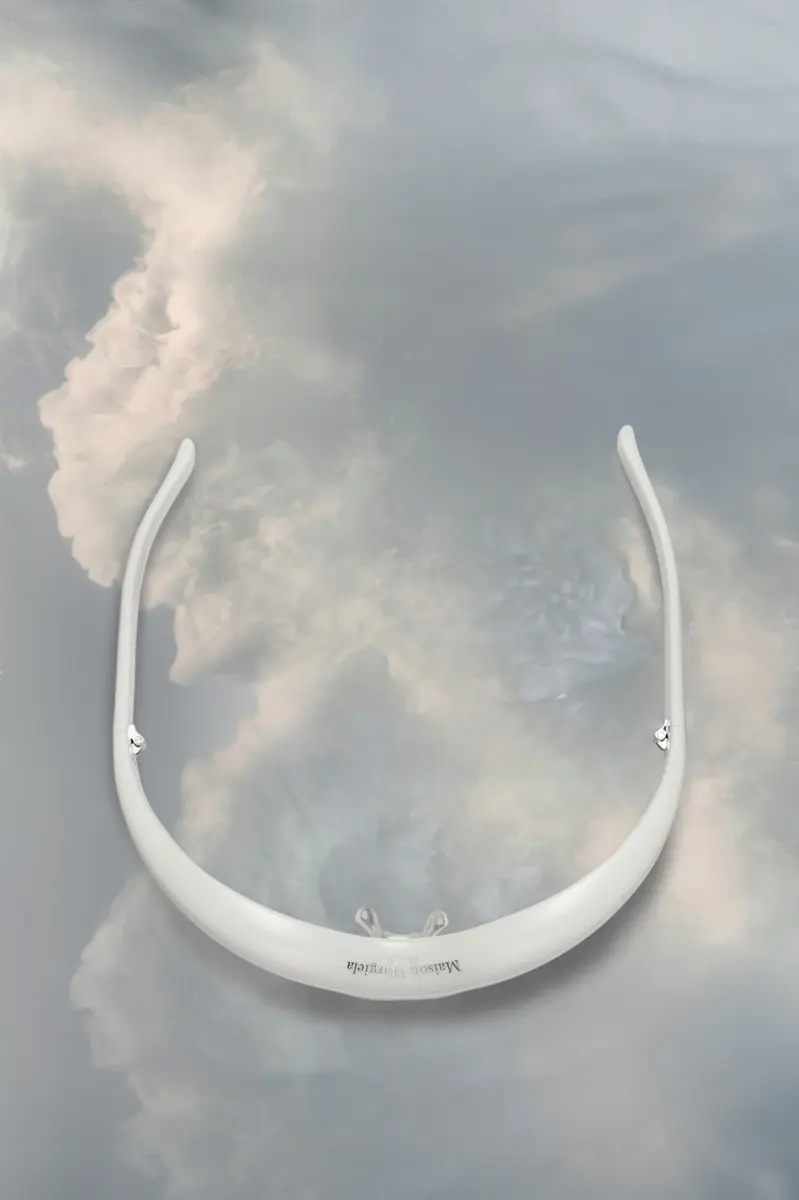 Maison Margiela y Gentle Monster presentan una colaboración integral de gafas sin género. Inspirados en su convicción común por la artesanía experimental, los diseños se interpretan a través del concepto característico de la casa: el glamour inconsciente. Con sus monturas curvas de gran tamaño, las gafas de sol MM002 están fabricadas en acetato. Estas gafas de doble uso pueden llevarse como diadema o tiara, del revés. Usadas así, el borde superior de la montura revela el logotipo de Maison Margiela, mientras que sus lados están adornados con las icónicas cuatro puntadas de la Maison.