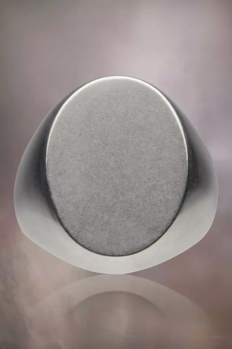 El anillo de caballero ovalado está elaborado en paladio con un cuerpo interior chapado en oro y el logotipo en el reverso.