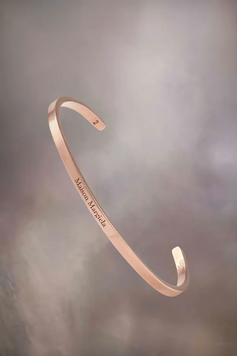 Brazalete de 3 mm con baño de oro amarillo y el logotipo de Maison Margiela grabado. Composición: 100 % plata. Palladio burattato. Brazalete con el logotipo en plata de ley. Logotipo de la marca grabado tono sobre tono. Evitar el contacto con agua salada, clorada y líquidos agresivos. Fabricado en Italia. Ancho: 3 mm.