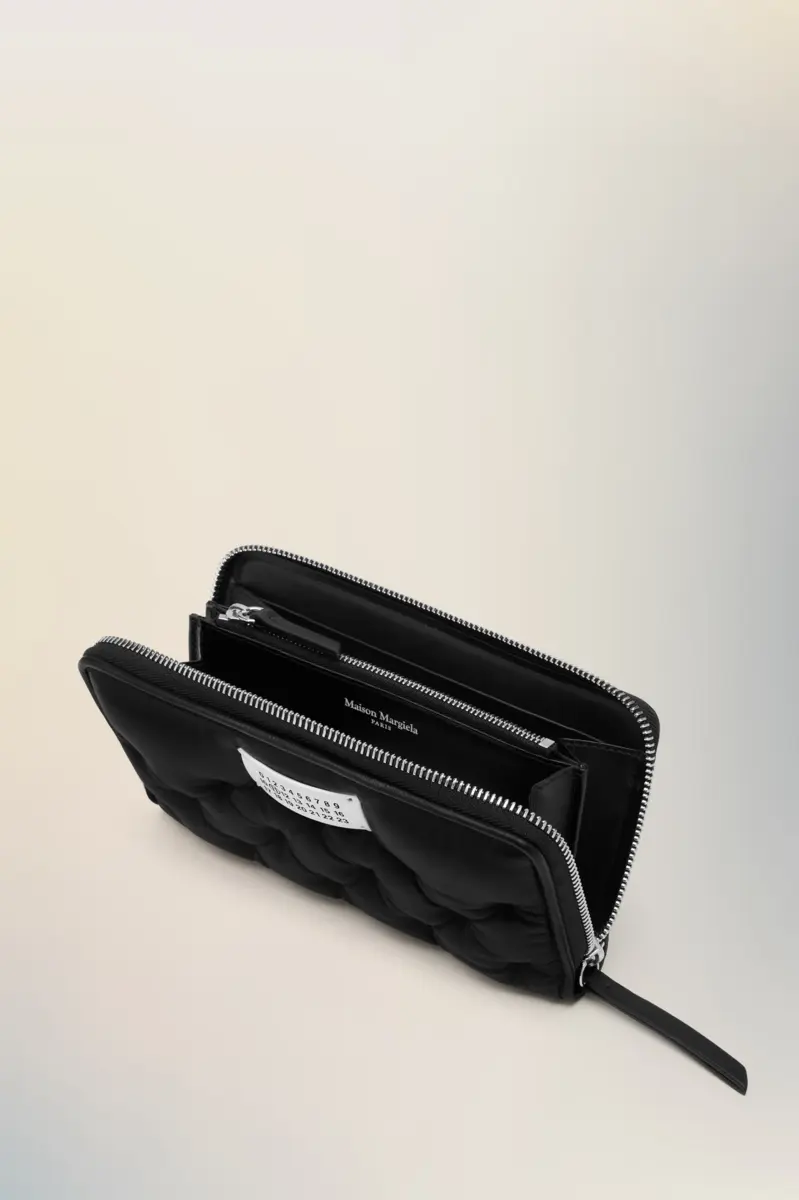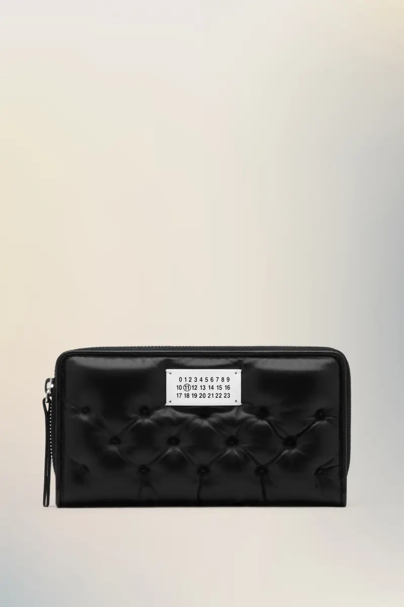 Fabricada en napa acolchada y bordada, la cartera Glam Slam evoca la noción del glamour inconsciente y su asociación con la comodidad, siguiendo un estudio sobre los rituales de vestimenta y viaje en todo el mundo. La Glam Slam debutó en el desfile Primavera/Verano 2018 y presenta un diseño acolchado que imita el matelassé, el estilo de las colchas cosidas a mano creadas en Marsella, Francia. El diseño con cremallera presenta bordes redondeados flexibles, una sección interior con cremallera y la etiqueta con el logotipo numérico de la Maison.