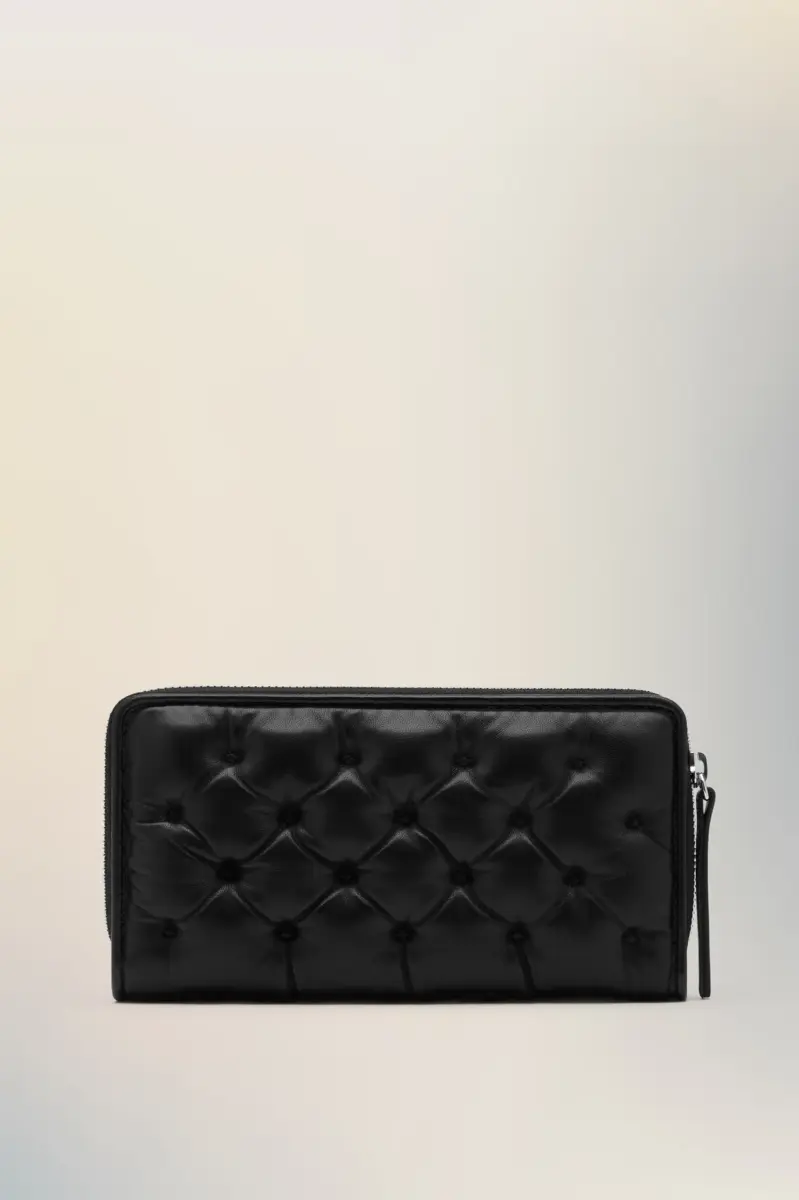 Cartera acolchada con cremallera en piel