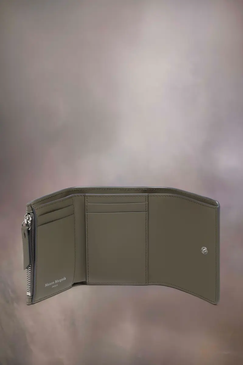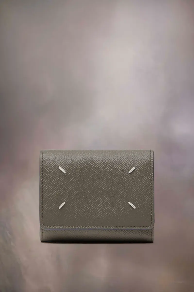 Con cierre de botón a presión, la cartera está confeccionada en piel granulada. Las cuatro puntadas distintivas de Maison Margiela aparecen en la solapa, en el reverso de una etiqueta.