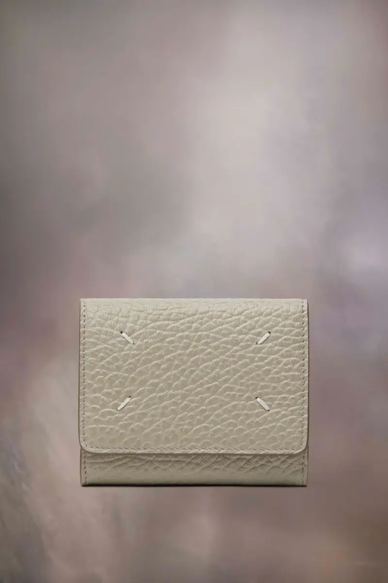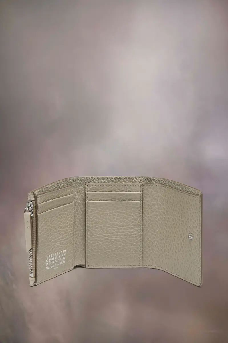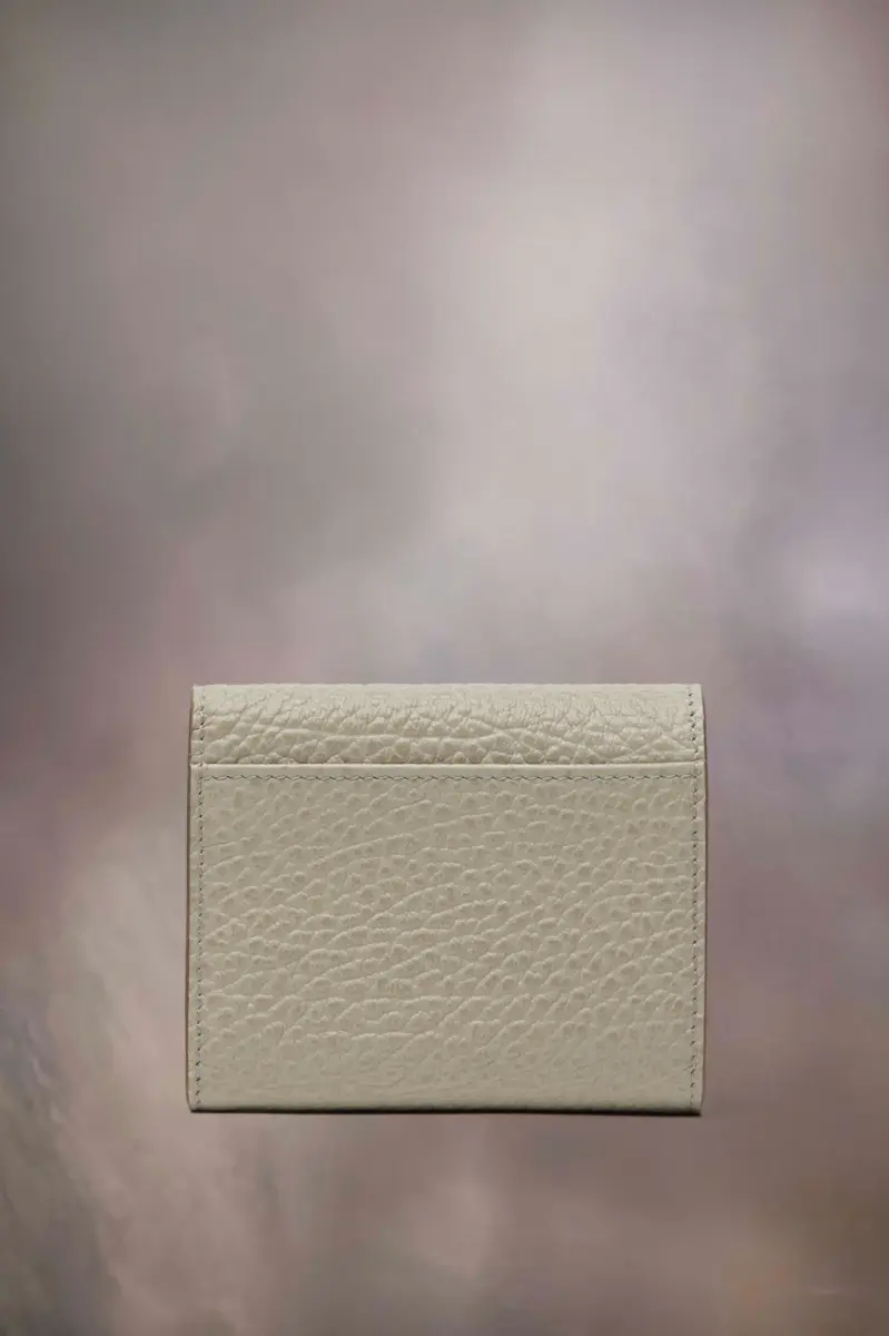 En piel granulada repujada, la cartera presenta el logotipo numérico en su interior, cuatro tarjeteros y una sección con cremallera. La firma de Maison Margiela, las cuatro puntadas, aparece en la parte trasera; el reverso de una etiqueta. Exterior: Piel de becerro granulada de tacto suave. Forro: Viscosa. Cuatro puntadas en la parte delantera. Cierre con botón a presión. Estampado del logotipo en el interior. Bolsillo interior con cremallera. Bolsillo interior plano. Seis ranuras para tarjetas en el interior. Limpiar con un producto específico para piel y un paño de microfibra húmedo. Hecho en Italia. Medidas: 10,5 cm x 8 cm (largo x alto).