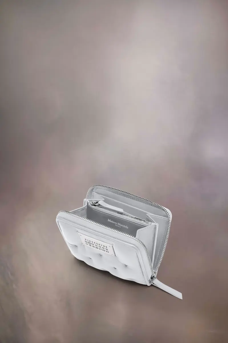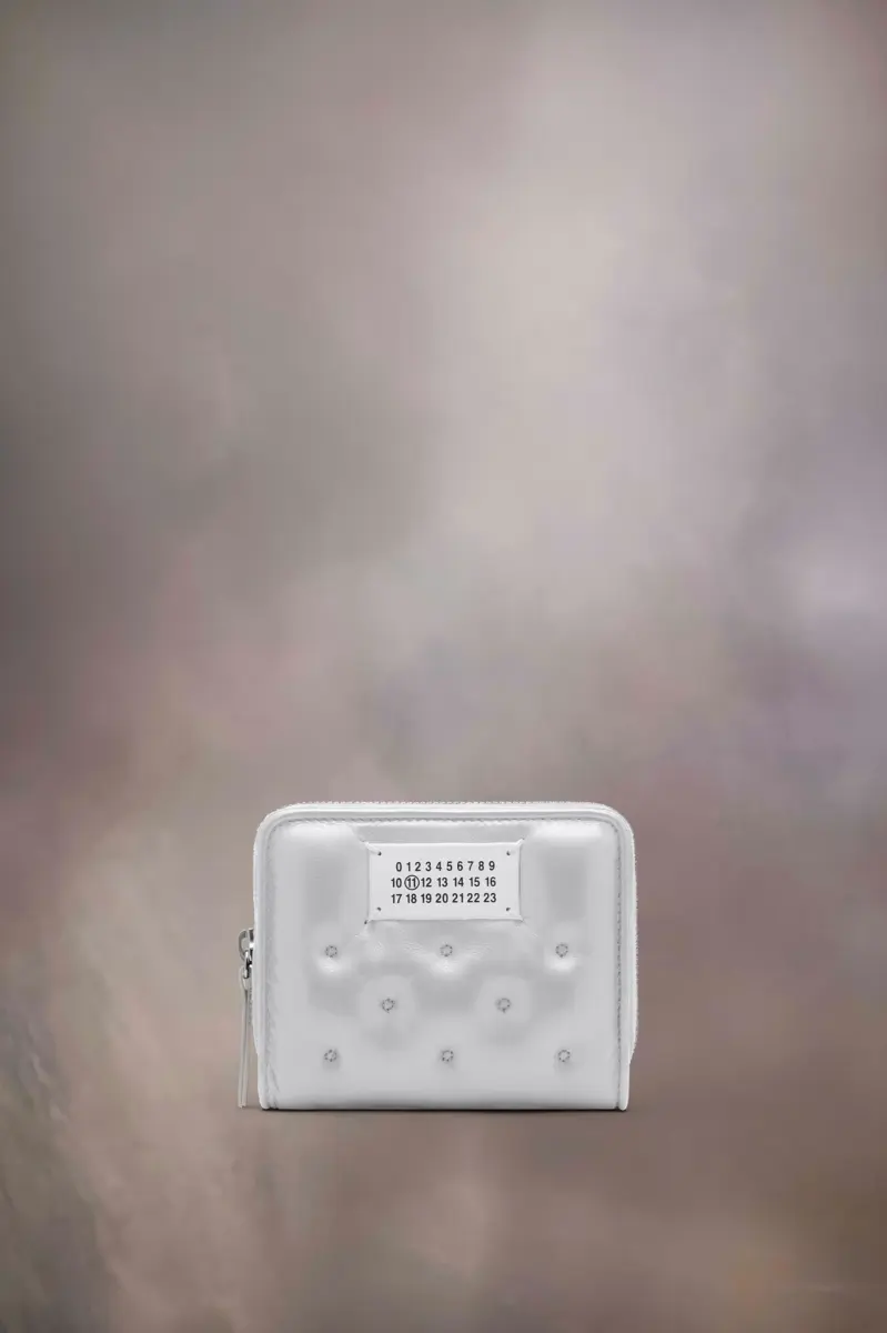 La cartera pequeña Glam Slam está confeccionada en napa con un bordado especial, con cremallera perimetral y monedero interior también con cremallera. La Glam Slam se estrenó en el desfile Primavera/Verano 2018 y presenta un diseño acolchado que imita el matelassé, el estilo de las colchas cosidas a mano creadas en Marsella, Francia. El concepto refleja la noción de glamour inconsciente de la Maison y evoca su asociación con la comodidad, siguiendo el estudio de los rituales de vestimenta y viajes por todo el mundo. Está adornado con la etiqueta del logotipo numérico en la parte delantera.