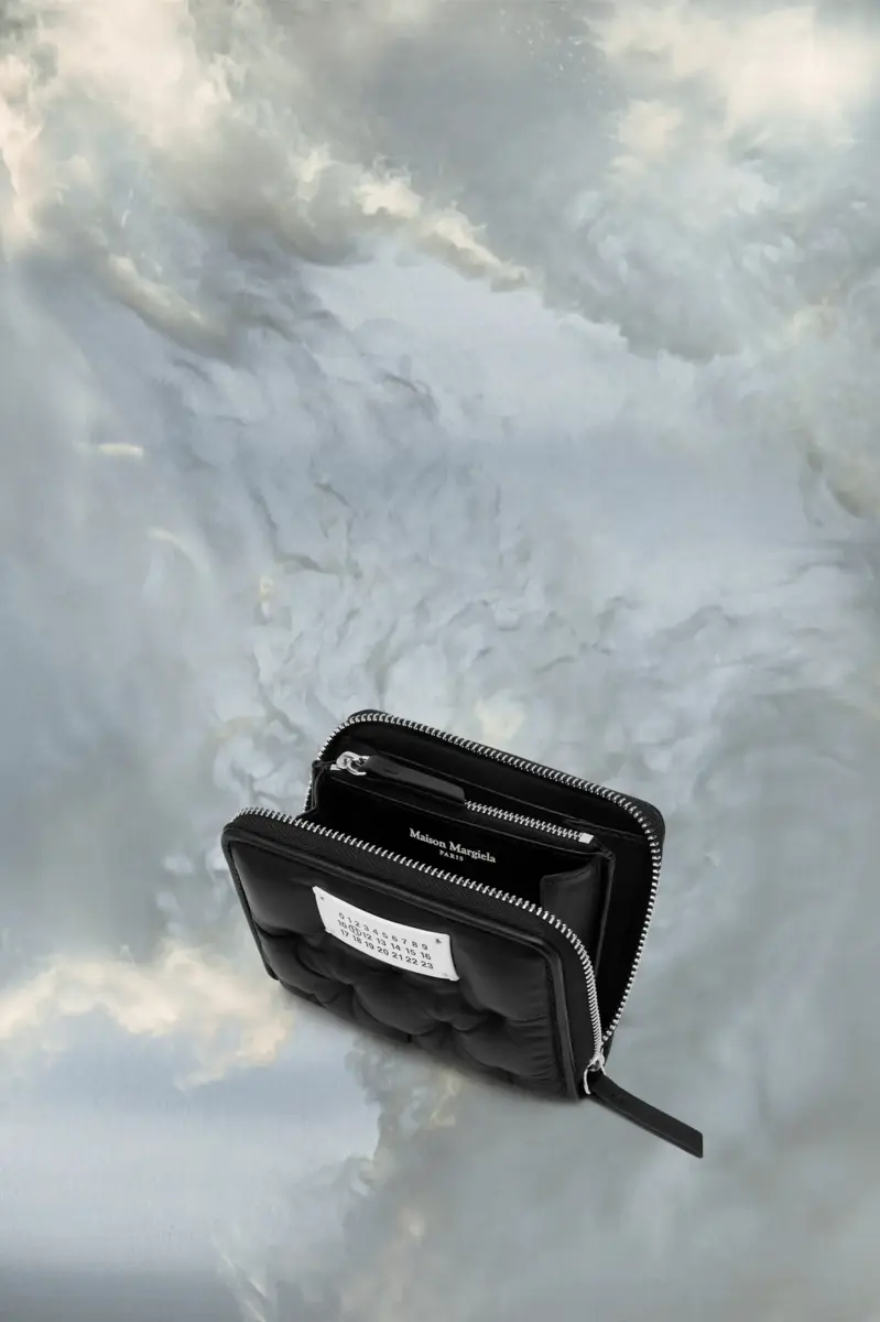 La cartera pequeña Glam Slam está confeccionada en napa con un bordado especial, con cremallera perimetral y monedero interior también con cremallera. La Glam Slam se estrenó en el desfile Primavera/Verano 2018 y presenta un diseño acolchado que imita el matelassé, el estilo de las colchas cosidas a mano creadas en Marsella, Francia. El concepto refleja la noción de glamour inconsciente de la Maison y evoca su asociación con la comodidad, siguiendo el estudio de los rituales de vestimenta y viajes por todo el mundo. Está adornado con la etiqueta del logotipo numérico en la parte delantera.