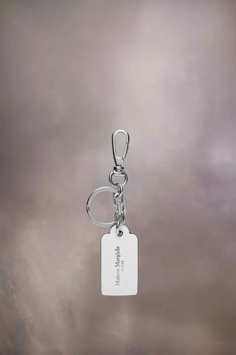 El pequeño llavero con gancho está elaborado en piel de becerro. El logotipo aparece en un lado y la firma de Maison Margiela, las cuatro puntadas, en el otro; el reverso de una etiqueta.