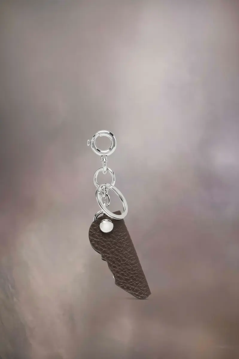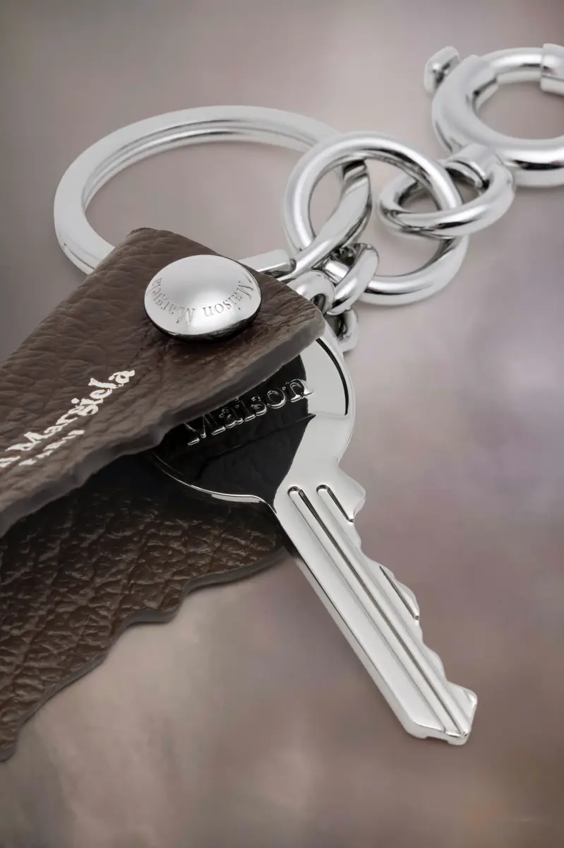 Confeccionado en piel granulada repujada, el llavero cuenta con un cierre de seguridad y el logotipo de Maison Margiela en la parte delantera. El cierre también está adornado con el logotipo.