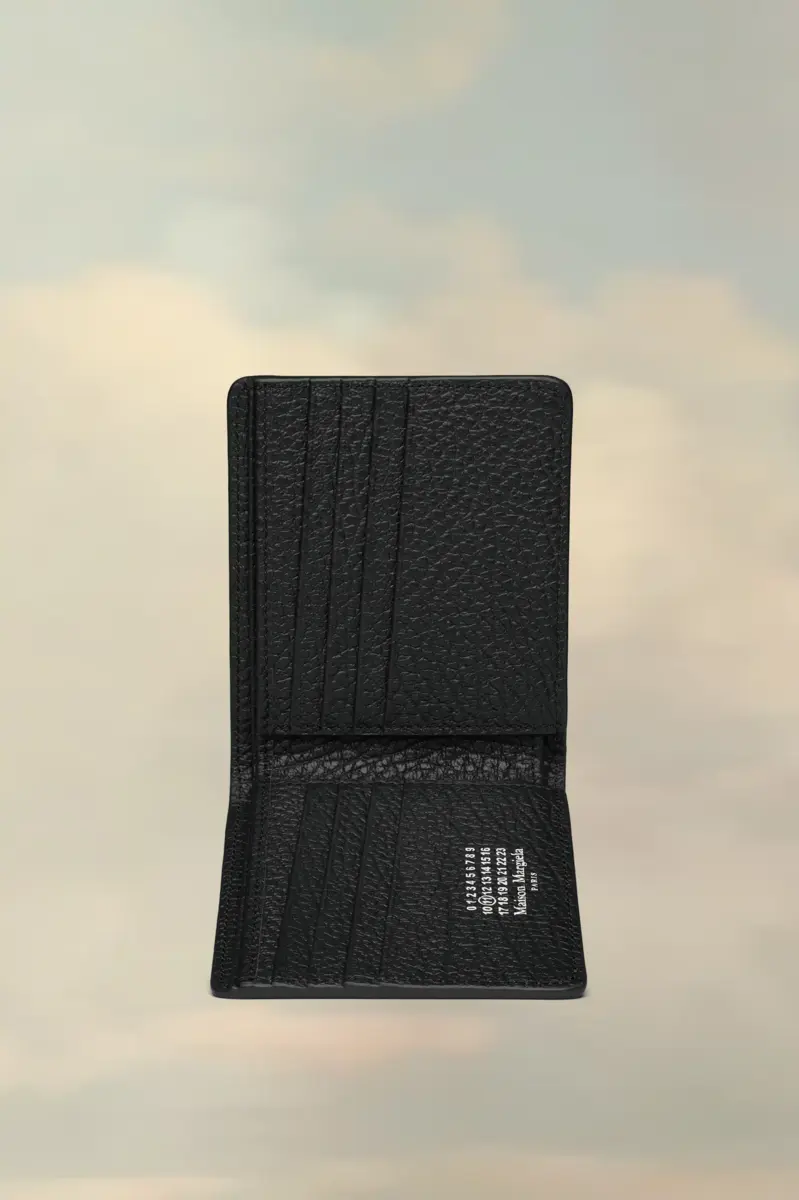 El tarjetero cuenta con ocho ranuras para tarjetas y múltiples secciones para billetes. Está confeccionado en piel granulada repujada con el logotipo numérico en el interior. La firma de Maison Margiela, las cuatro puntadas, aparece en la parte trasera; el reverso de una etiqueta. Exterior: Piel de becerro granulada de tacto suave. Forro: Viscosa. Cuatro puntadas en la parte trasera. Estampado del logotipo en el interior. Dos bolsillos interiores planos. Diez ranuras para tarjetas. Limpiar con un limpiador de piel específico y un paño de microfibra húmedo. Hecho en Italia. Medidas: 10,5 cm x 9,5 cm (largo x alto).