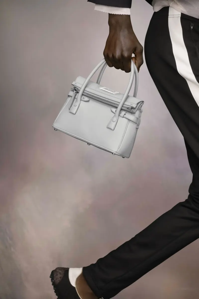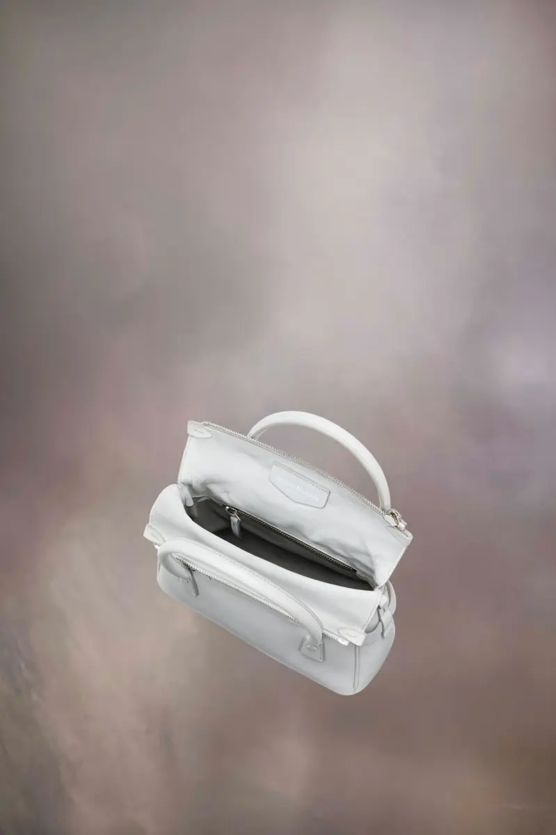 El 5AC East West, elaborado en piel de cabra, toma como base el emblemático bolso 5AC de Maison Margiela y le confiere un aire informal y formal. Se acentúa con la etiqueta con el logotipo en la parte delantera. La icónica línea 5AC toma su nombre de la palabra francesa «sac» (bolso). La versión East West es la última incorporación a la reinterpretación de clásicos modernos, con un tamaño alargado y mayor volumen. Inspirado en un maletín masculino, con la forma horizontal que inspiró su nombre, el bolso puede llevarse en la mano, al hombro o cruzado. El estilo continúa explorando el concepto de anonimato del forro de la Maison para revelar su estructura interna.