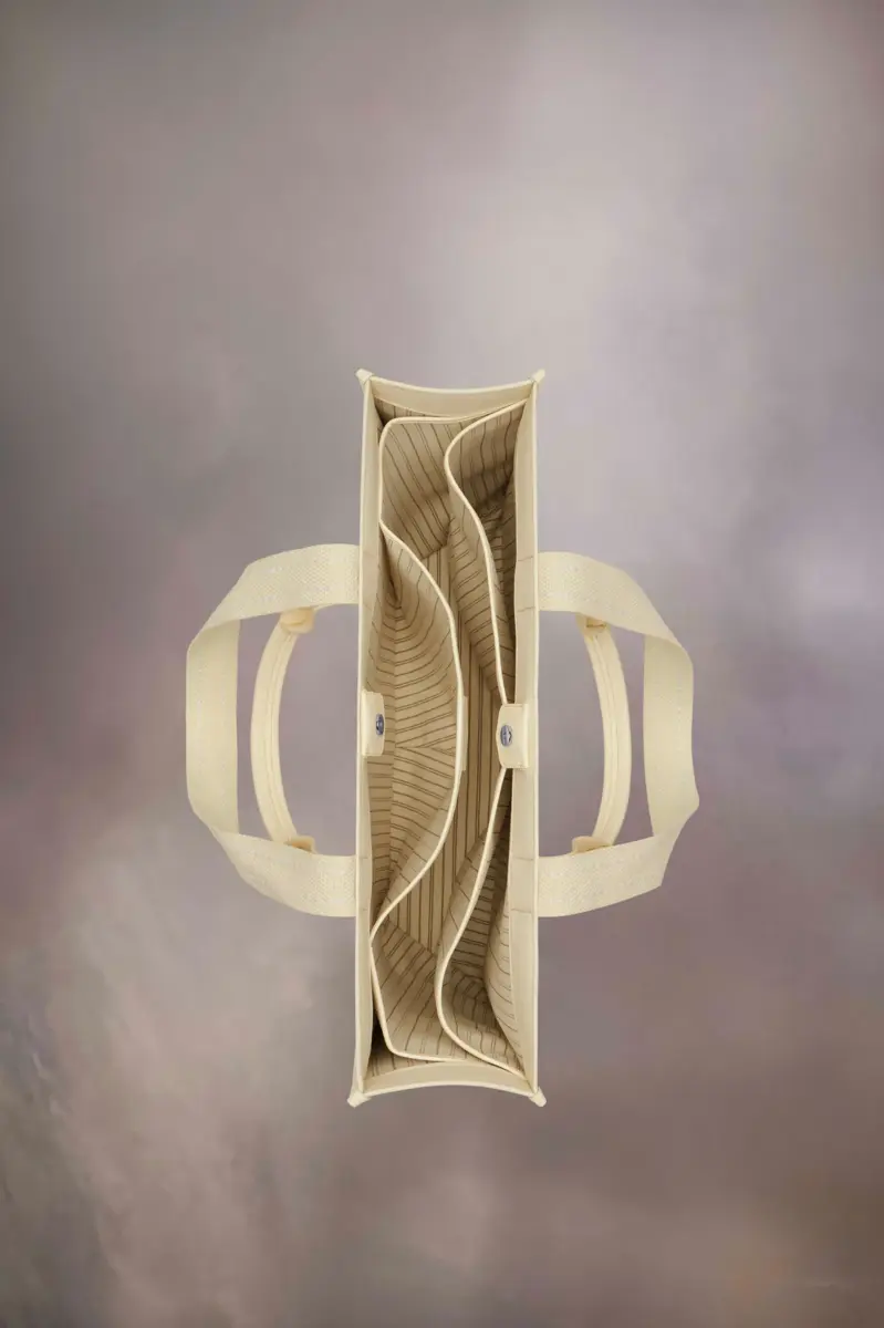 Bolso de compras en tela toile y piel de becerro