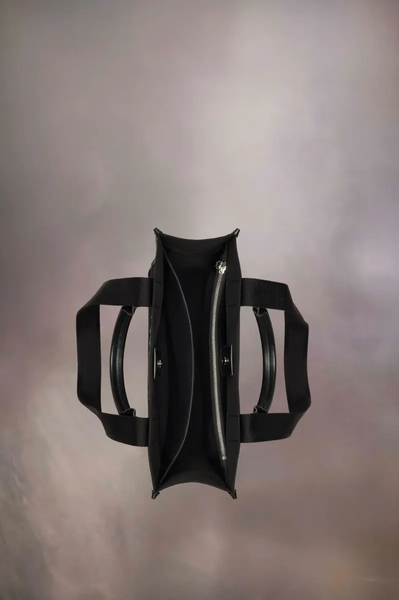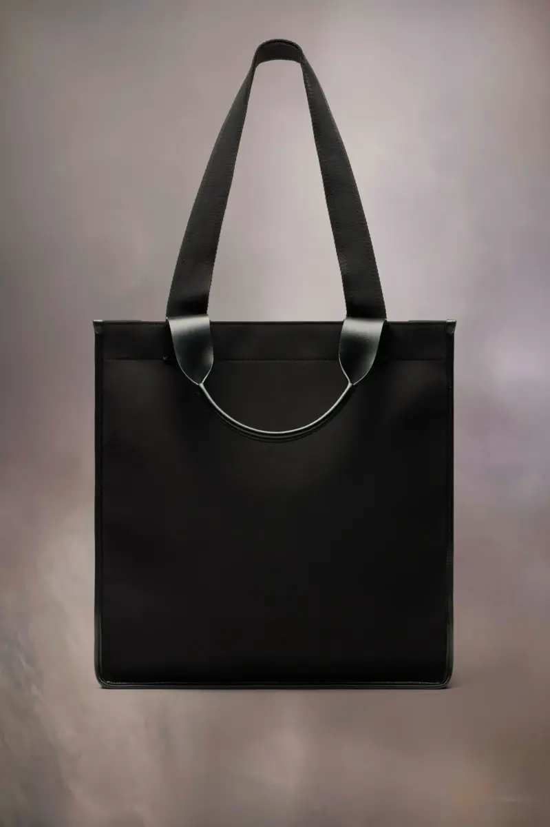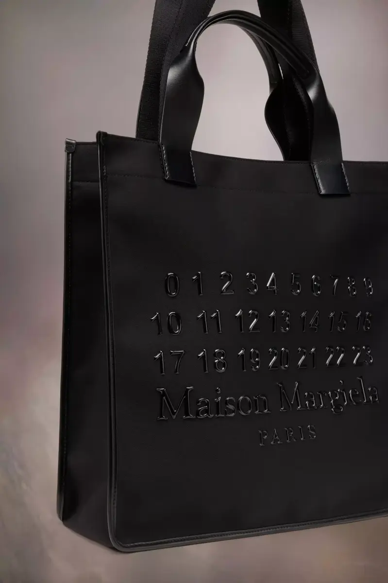 En tejido Mackintosh con contraste de charol de becerro, el bolso de compras vertical Cabas se completa con asas superiores largas y cortas, además de bolsillos interiores. Luce el logotipo numérico de Maison Margiela en la parte delantera. Cuerpo: 65 % poliéster, 35 % algodón. Contraste: 100 % piel de becerro. Aplicación: 100 % poliuretano. Forro: 100 % algodón. Interior: 100 % piel de becerro. Herrajes metálicos. Bolso de compras en tejido Mackintosh y piel de becerro. Asas de tela y piel. Etiqueta con el logotipo en la parte delantera. Cierre con botones. Bolsillos interiores. Limpiar la parte de piel con el kit de piel de Maison Margiela. Hecho en Italia.
