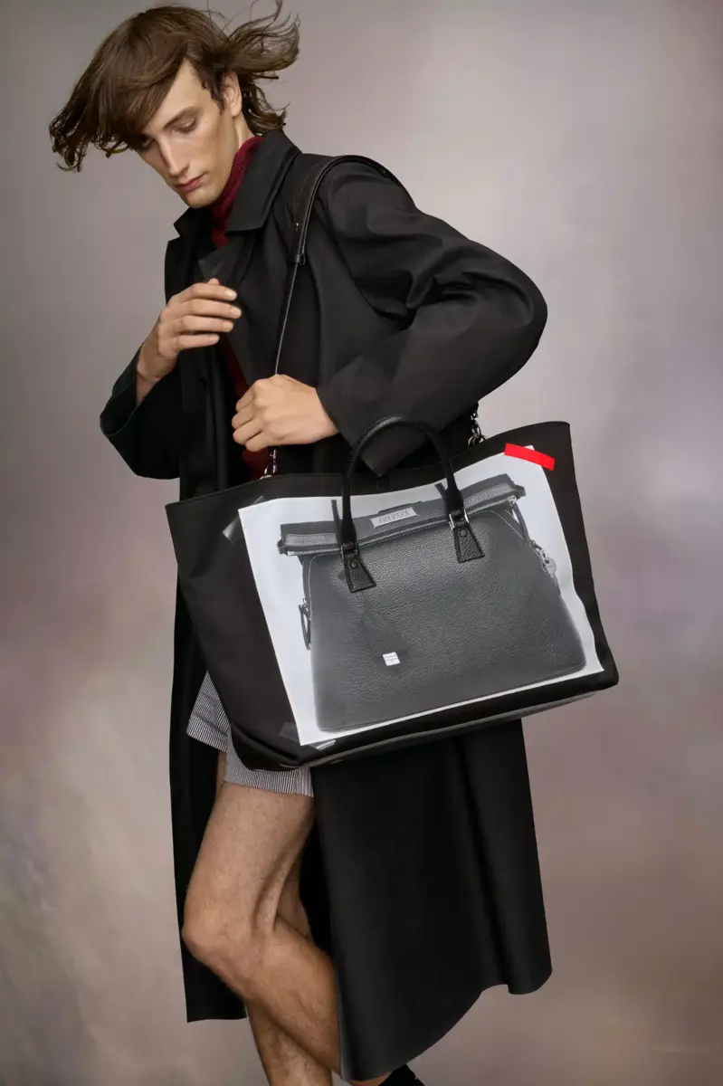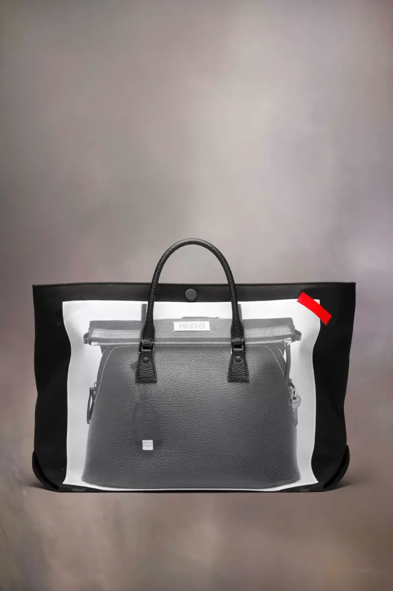 El Trompe l’oeil 5AC classique mediano se presenta en impermeable estampado y piel con un diseño trompe l’oeil 5AC, acentuado con la etiqueta con el logotipo en la parte delantera. La icónica línea 5AC toma su nombre de la palabra francesa «sac» (bolso). Explora el concepto de anonimato del forro de la Maison. Los remaches metálicos del bolso están cubiertos de piel a mano, con el metal visible solo donde es necesario, para una apariencia impecable. Español: Los detalles artesanales incluyen los bordes expuestos del bolso pintados a mano a tono con el cuero.