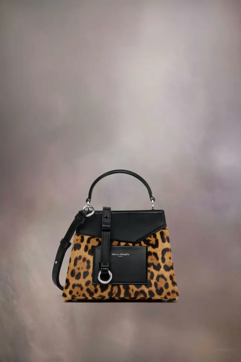 El bolso pequeño Snatched está elaborado en piel sintética curtida al cromo con un colorido estampado de leopardo. El Snatched debutó en la Colección Artesanal Otoño/Invierno 2019. Su nombre se debe al término coloquial que significa «buena apariencia» y también a su forma de llevarlo con estilo. Este bolso, sin género, presenta una forma asimétrica inspirada en el origami. Cuenta con una correa de hombro de piel y un asa frontal perforada para llevarlo como clutch. El bolso presenta el cierre rectangular con espejo de la Maison, adornado con el logotipo numérico que se desbloquea en el número 11.