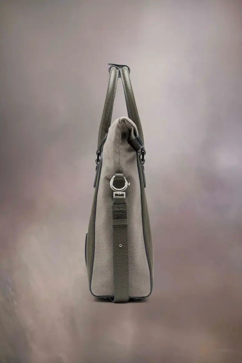 Portadocumentos en piel granulada y lona
