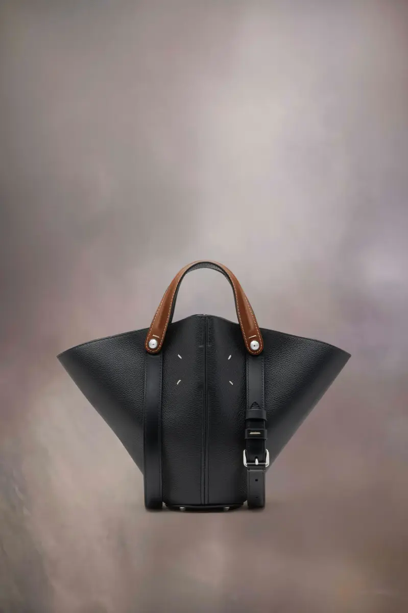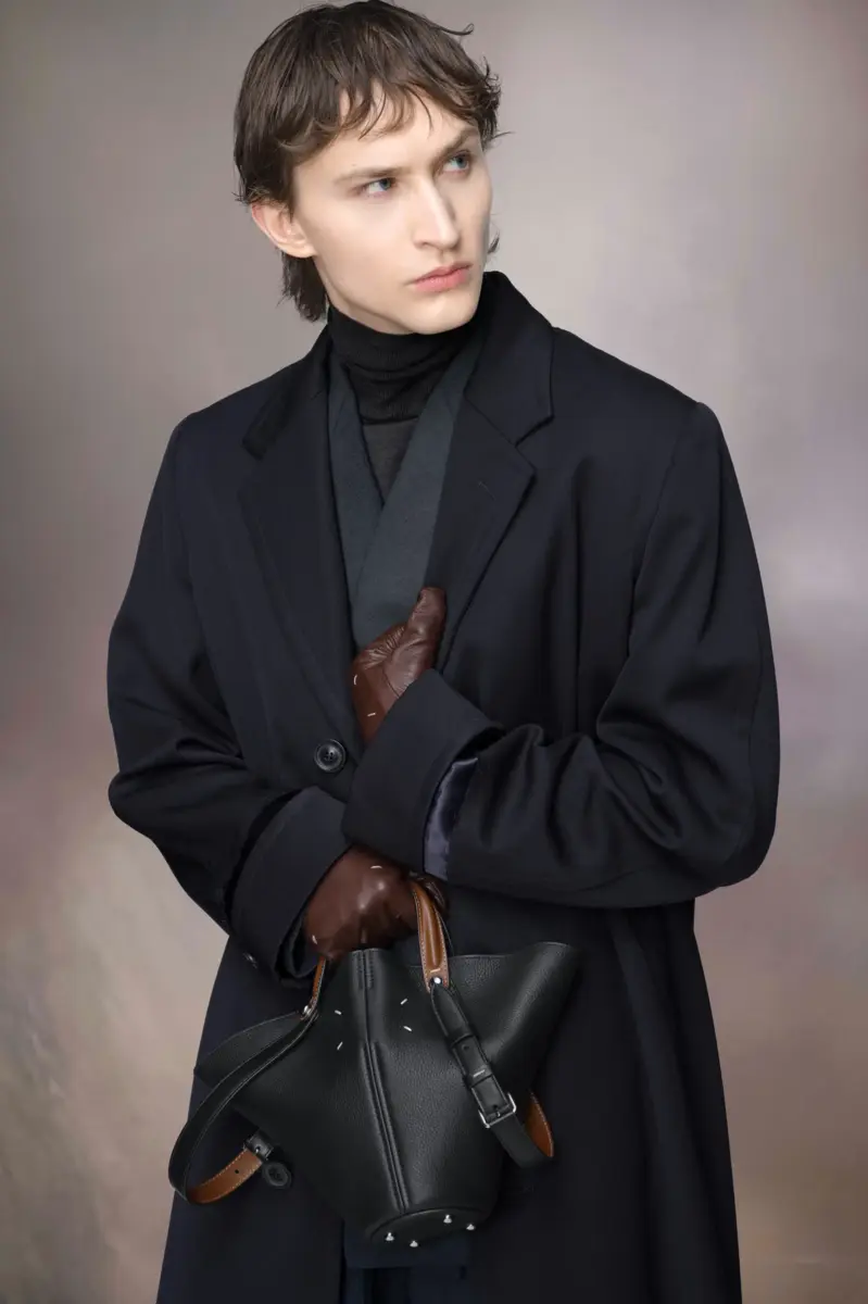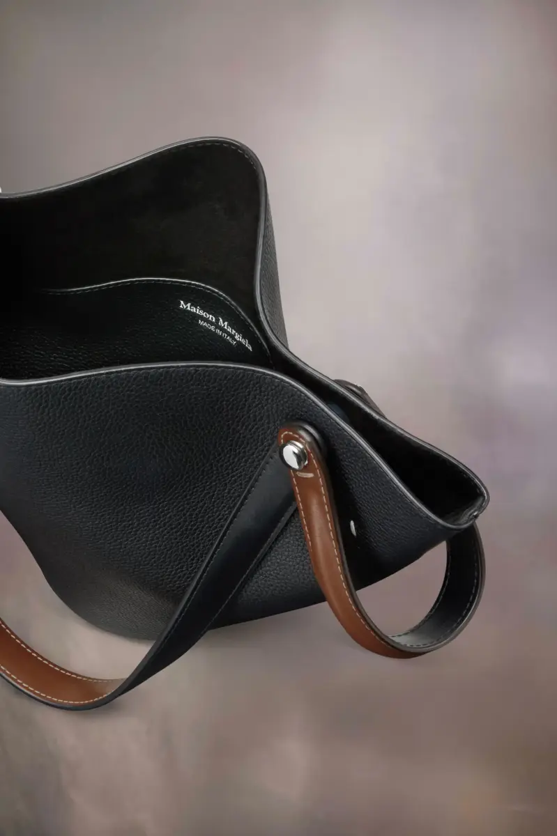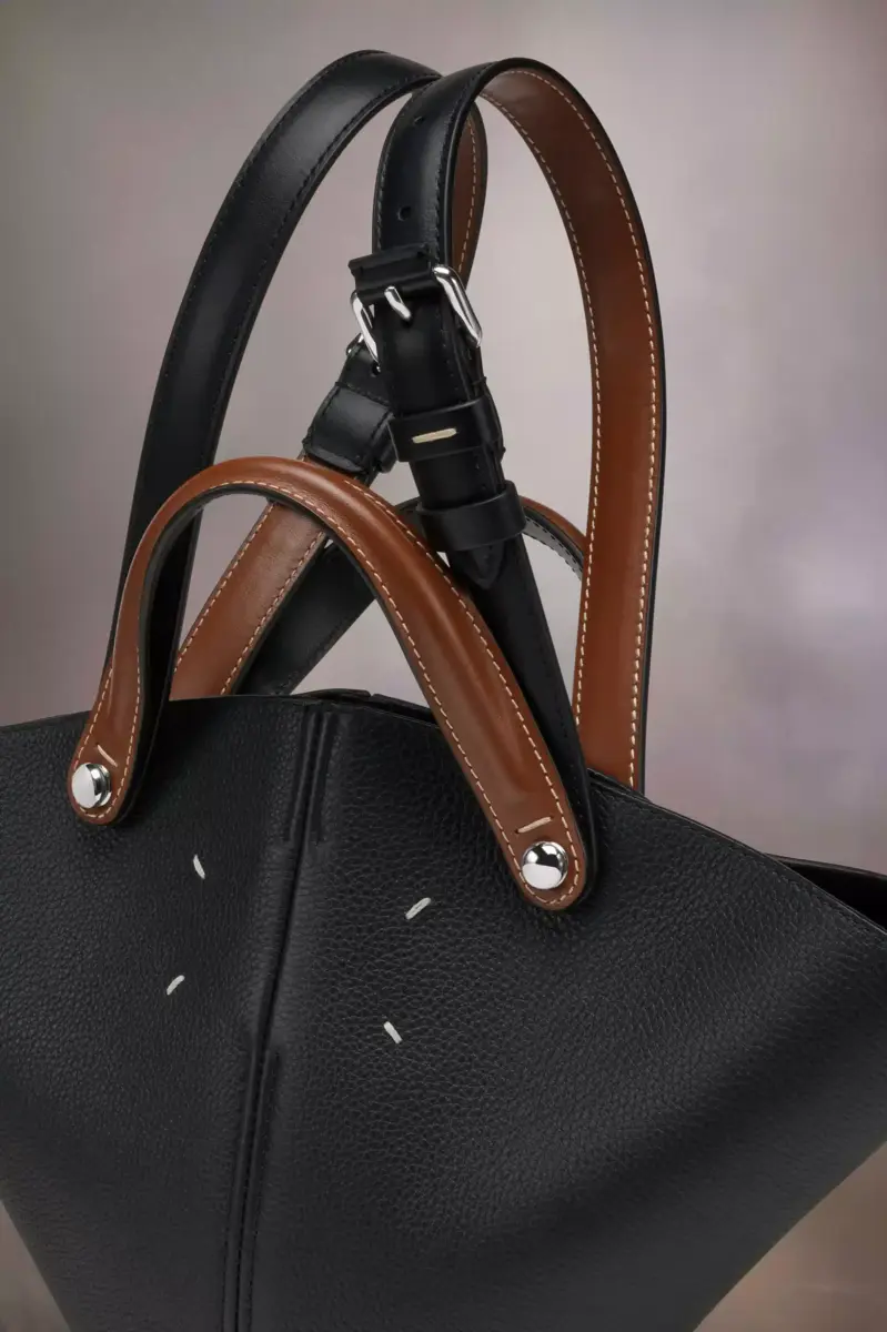 La Maison lanza el bolso Dress-age para la temporada Primavera/Verano 2025, elaborado en suave piel de becerro granulada. Con un toque ecuestre, este pequeño bolso presenta una marroquinería clásica y líneas refinadas, combinando un glamour discreto con un diseño gestual. Su forma cónica presenta un detalle de correa doble en contraste. La base con tachuelas permite que el bolso se mantenga de pie, y el interior está adornado con el logotipo. Las cuatro puntadas, la firma de Maison Margiela, aparecen en la parte trasera. Lo opuesto a una etiqueta.