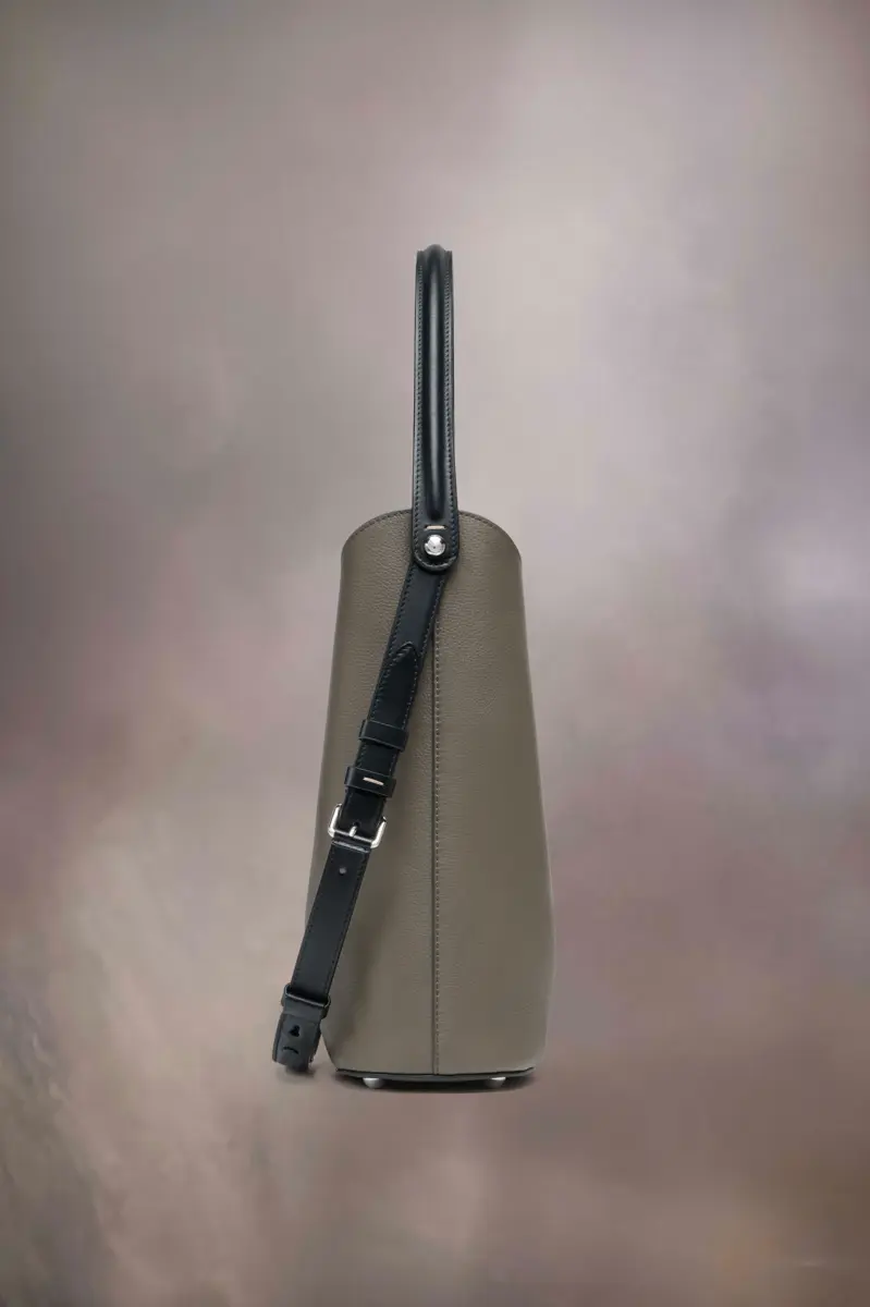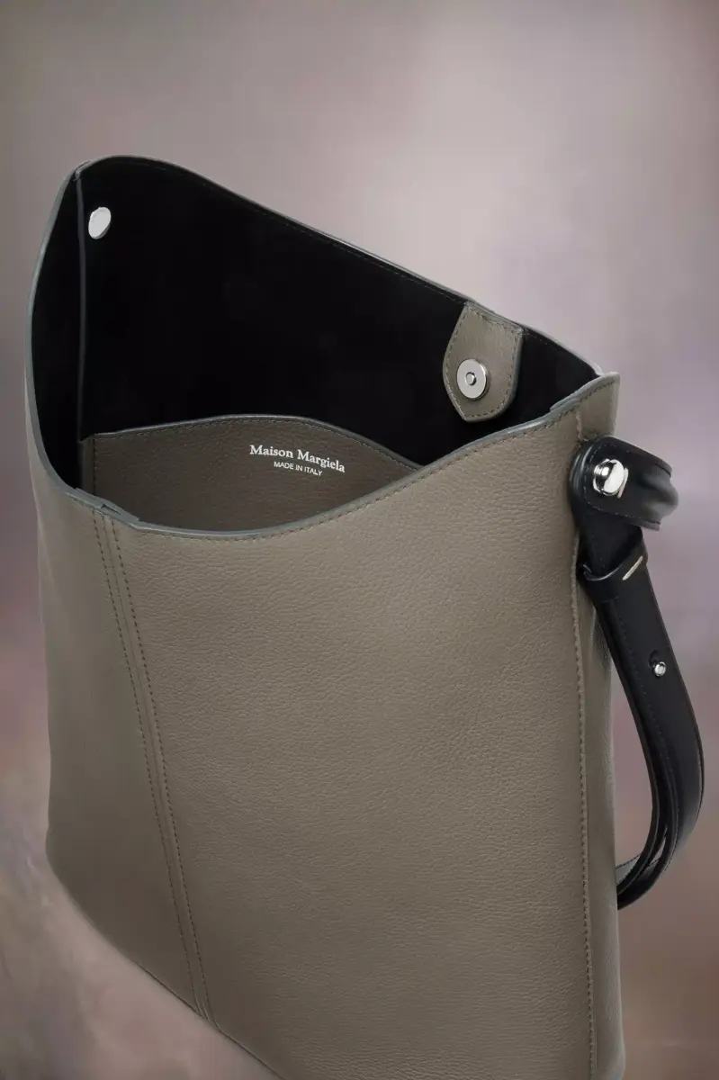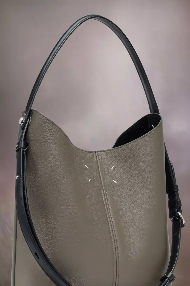 La Maison lanza el bolso hobo Dress-age para la temporada primavera/verano 2025, elaborado en suave piel de becerro granulada. Con un toque ecuestre, este pequeño bolso luce una marroquinería clásica y líneas refinadas, combinando un glamour discreto con un diseño gestual. Su forma cónica presenta un detalle de correa doble en contraste. La base con tachuelas permite que el bolso se mantenga de pie, y el interior está adornado con el logotipo. Las cuatro puntadas, la firma de Maison Margiela, aparecen en la parte trasera. Lo opuesto a una etiqueta.