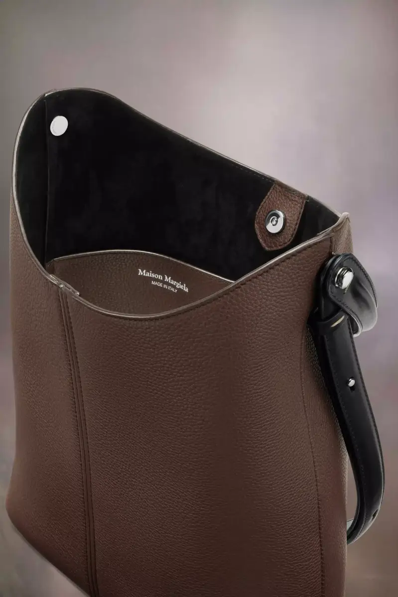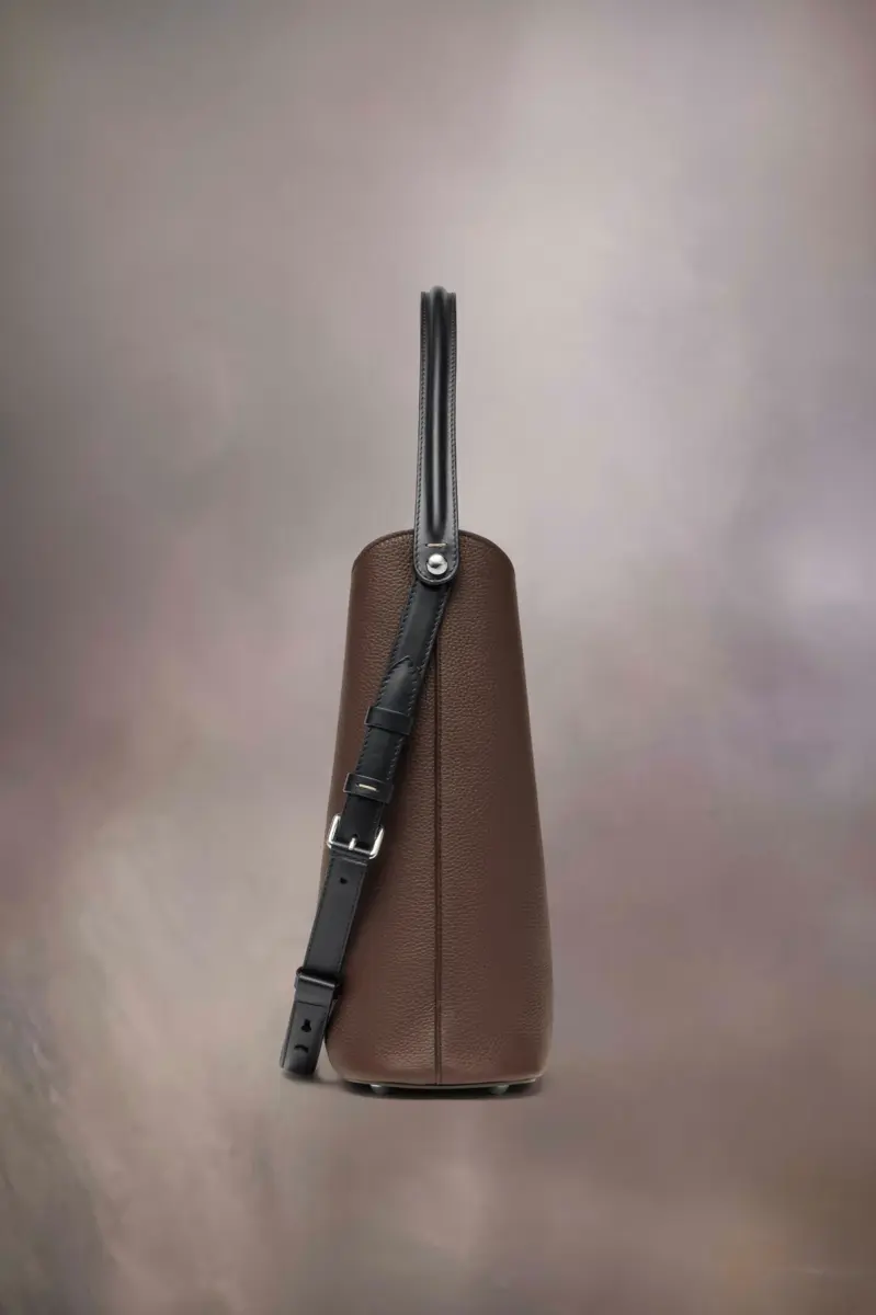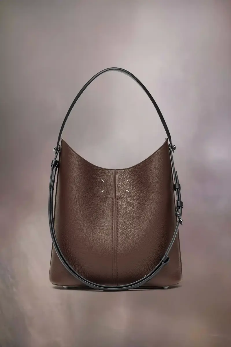 La Maison lanza el bolso hobo Dress-age para la temporada primavera/verano 2025, elaborado en suave piel de becerro granulada. Con un toque ecuestre, este pequeño bolso luce una marroquinería clásica y líneas refinadas, combinando un glamour discreto con un diseño gestual. Su forma cónica presenta un detalle de correa doble en contraste. La base con tachuelas permite que el bolso se mantenga de pie, y el interior está adornado con el logotipo. Las cuatro puntadas, la firma de Maison Margiela, aparecen en la parte trasera. Lo opuesto a una etiqueta.