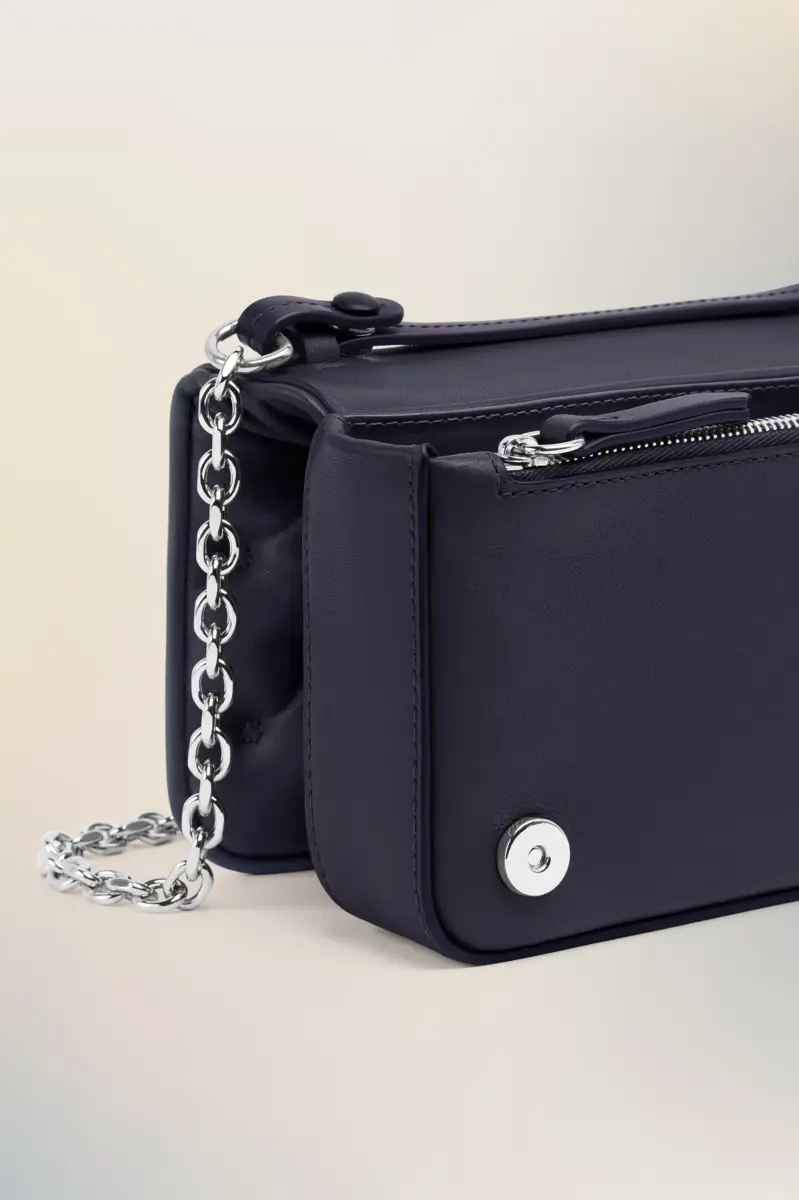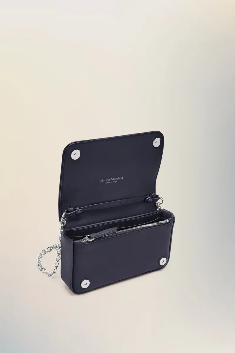 Una evolución compacta del Glam Slam, este bolso cartera plasma la idea de glamour inconsciente de la Maison a través de un exterior acolchado y suave como una almohada. Su forma estructurada se abre a múltiples compartimentos, asegurados con cierres magnéticos y una cremallera pulida. La correa de cadena y la etiqueta con el logotipo numérico añaden contraste: elegante, industrial e inesperado.