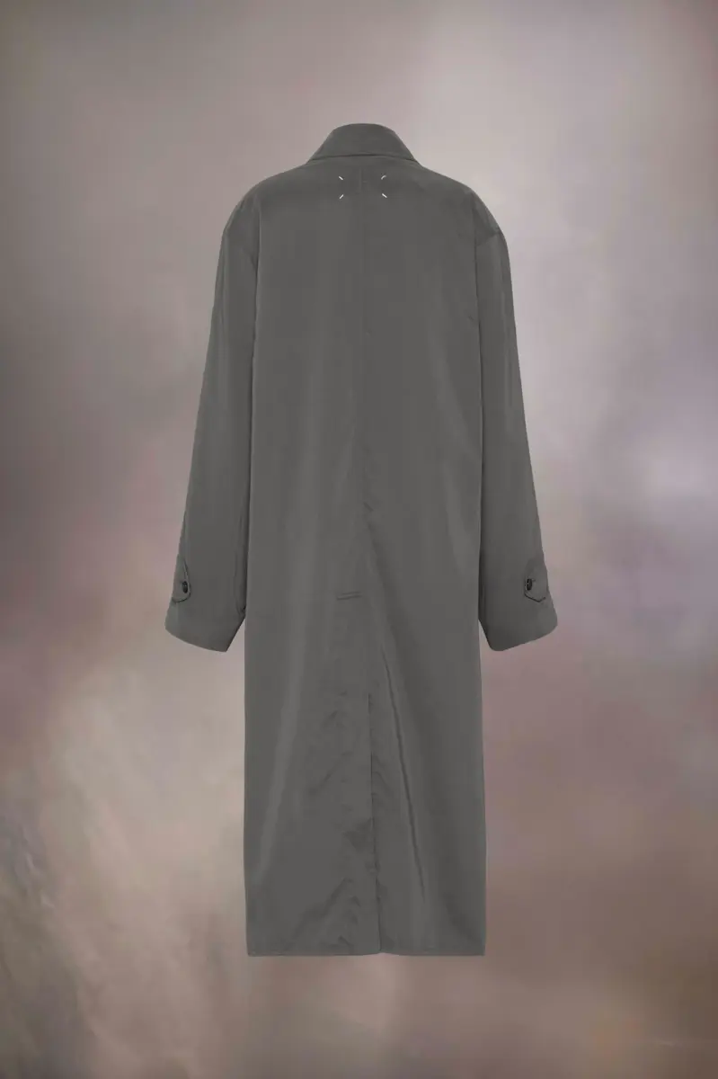 Esta gabardina presenta un acabado desgastado. Presenta una abertura trasera, cuello clásico y puños abotonados, además de una tapeta abotonada oculta para un look minimalista. Las cuatro puntadas distintivas de Maison Margiela aparecen en la espalda; lo opuesto a una etiqueta.