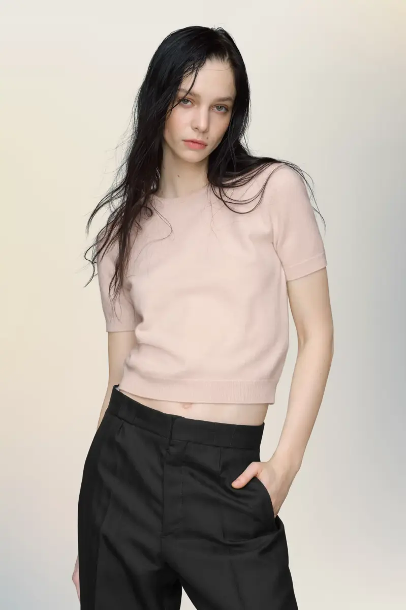 Top de punto de manga corta en fina lana virgen