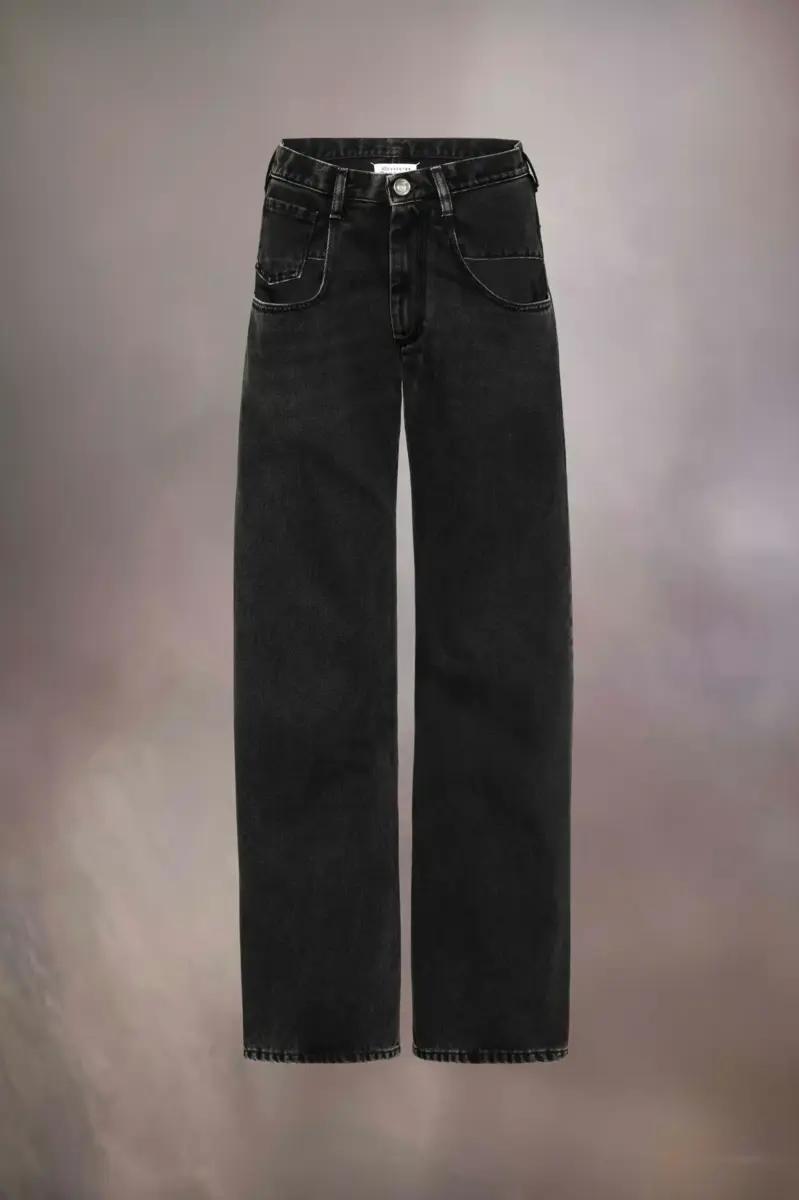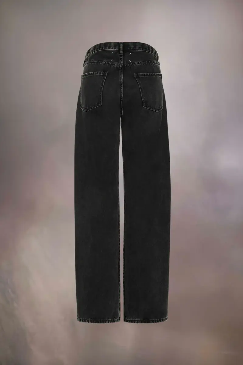 Los vaqueros rectos de corte relajado presentan un acabado desgastado que les da un aspecto desgastado y cuentan con amplios bolsillos holgados en la parte delantera para un efecto Décortiqué. Se cierran con botones y trabillas. El distintivo de Maison Margiela, las cuatro puntadas, aparece en la espalda; lo opuesto a una etiqueta.