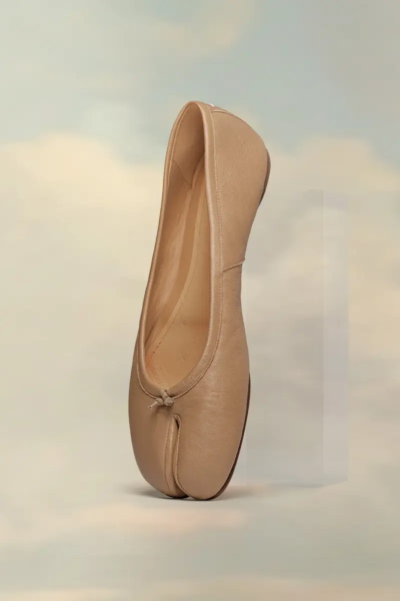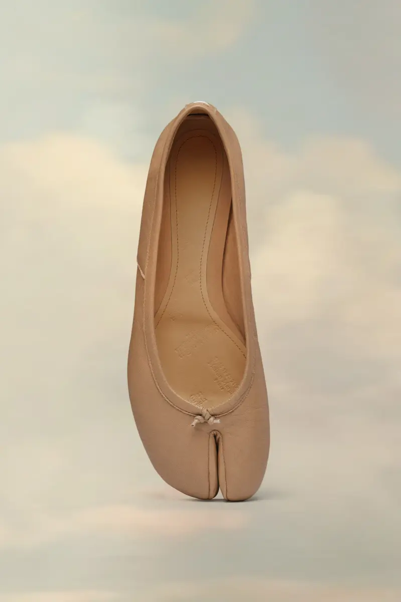 Las bailarinas Tabi en suave napa presentan la puntera dividida Tabi, inspirada en el tradicional calcetín japonés del siglo XV que lleva el mismo nombre, lanzado para la colección de debut de la Maison en 1989. Captura el espíritu vanguardista e insubordinado de la Maison y existe como un clásico heredado, continuamente explorado a través de cada colección.