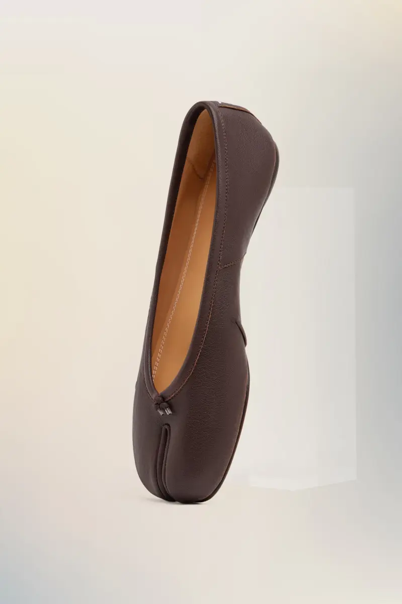 Maison Margiela presenta las nuevas bailarinas Tabi, cuyo diseño se inspira en las bailarinas del archivo de la casa. Están confeccionadas en suave napa con un tratamiento artesanal de efecto usado aplicado en los pliegues, la base y las costuras, creando un efecto vintage artesanal. Presentan la puntera dividida Tabi, inspirada en el calcetín japonés tradicional del siglo XV que lleva el mismo nombre, lanzado para la colección de debut de la Maison en 1989. Captura el espíritu vanguardista e insubordinado de la Maison y existe como un clásico heredado, continuamente explorado a través de cada colección.