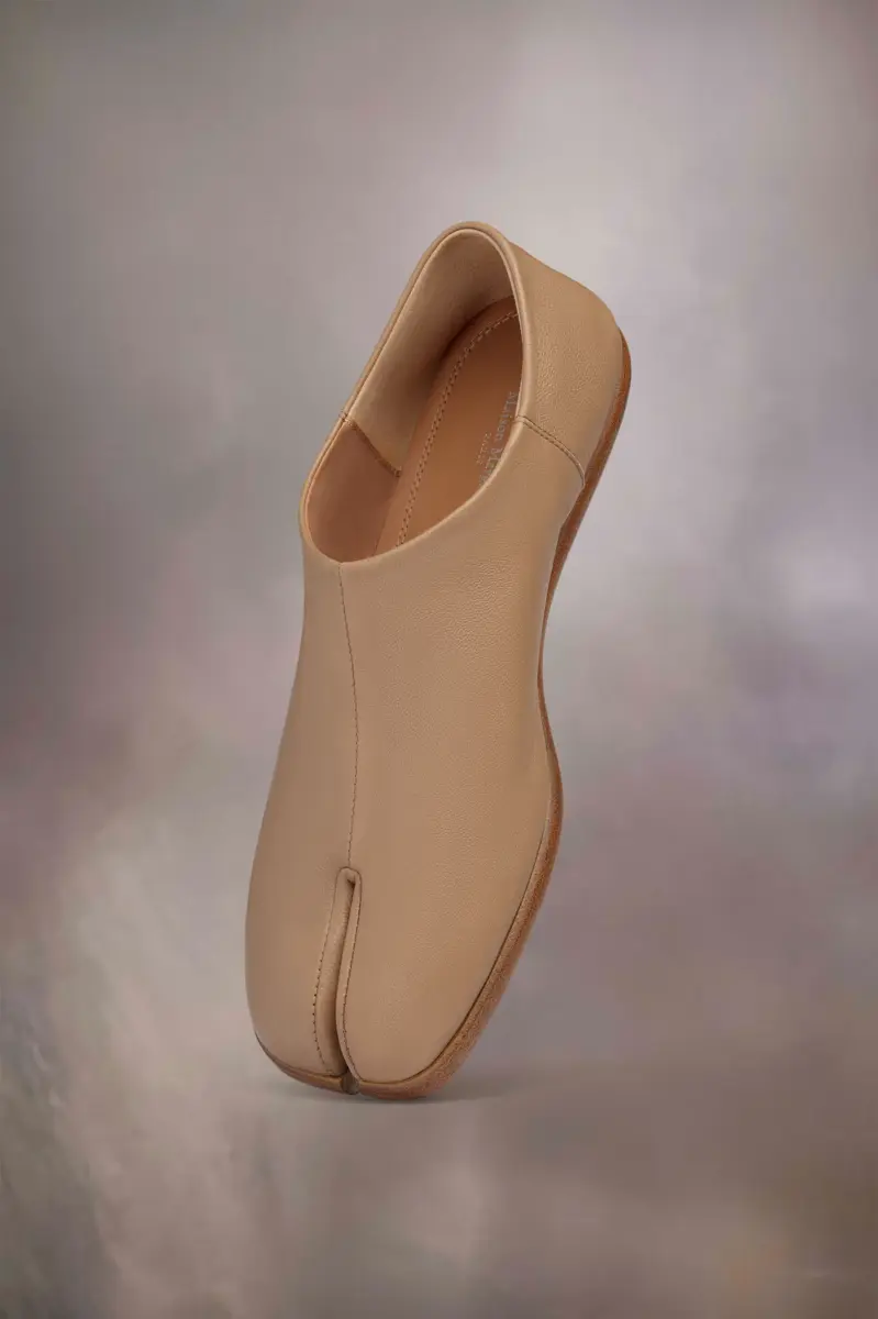 Elaborados en suave piel de napa, los zapatos babucha presentan la puntera dividida Tabi, inspirada en el tradicional calcetín japonés del siglo XV que lleva el mismo nombre, lanzado para la colección debut de la Maison en 1989. Captura el espíritu vanguardista e insubordinado de la Maison y existe como un clásico heredado, continuamente explorado a través de cada colección.