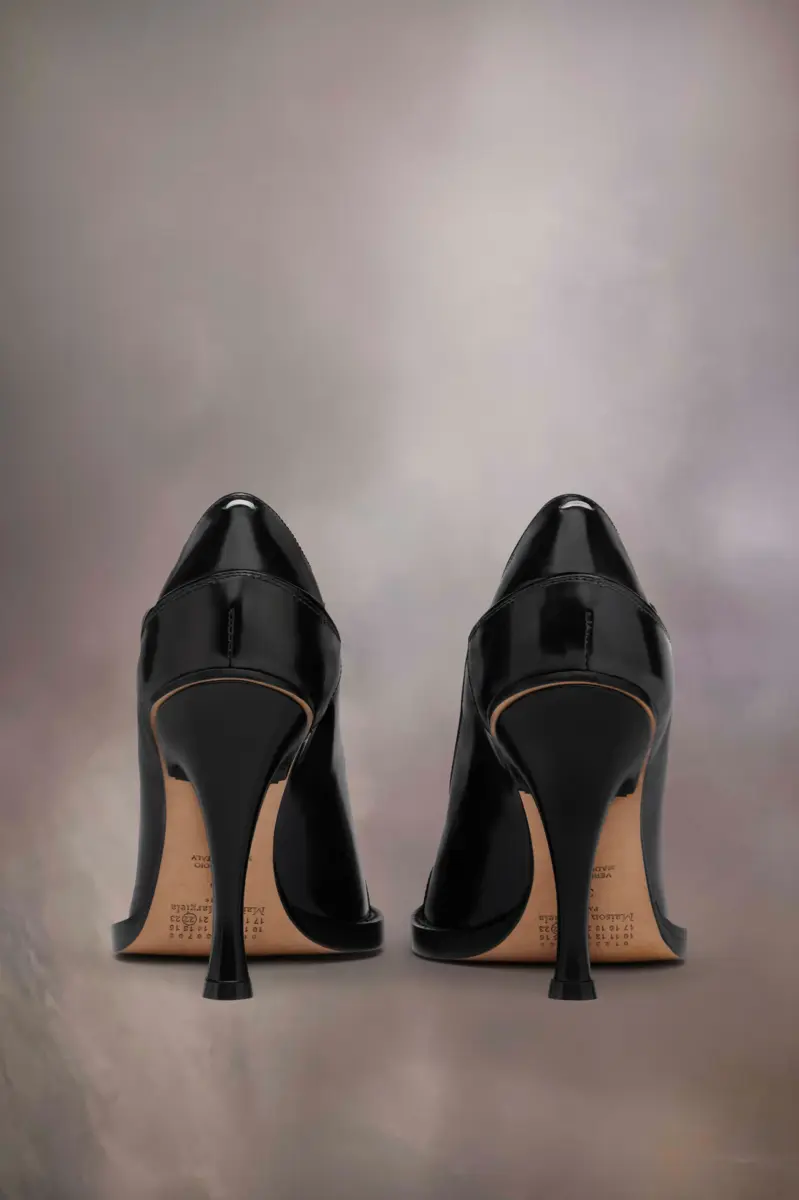 El Bourgeoise Pump, confeccionado en piel cepillada, tiene una correa abotonada y un tacón fino. Presentan la puntera dividida Tabi, inspirada en el tradicional calcetín japonés del siglo XV que lleva el mismo nombre, lanzado para la colección de debut de la Maison en 1989. Captura el espíritu vanguardista e insubordinado de la Maison y existe como un clásico heredado, continuamente explorado a través de cada colección.