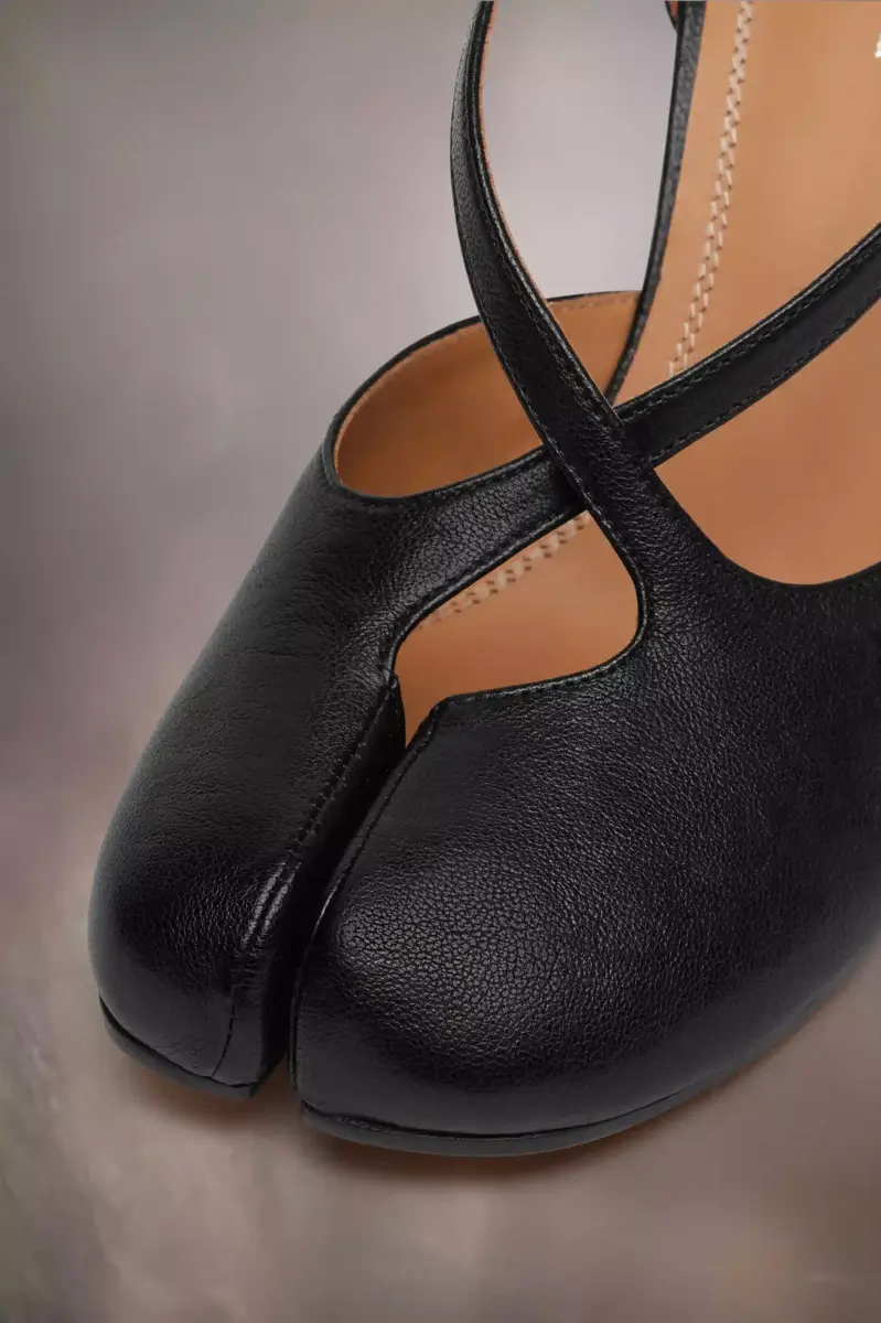 Elaboradas en suave napa, estas sandalias con aberturas presentan un tacón cilíndrico de 8 cm, una tira ajustable en el tobillo y la icónica puntera dividida Tabi. Inspiradas en el tradicional calcetín japonés del siglo XV del mismo nombre, se lanzaron para la colección debut de la Maison en 1989 y capturan el espíritu vanguardista e insubordinado de la firma. Un clásico de la herencia, que se renueva cada temporada. La puntada distintiva de Maison Margiela aparece en la parte trasera.