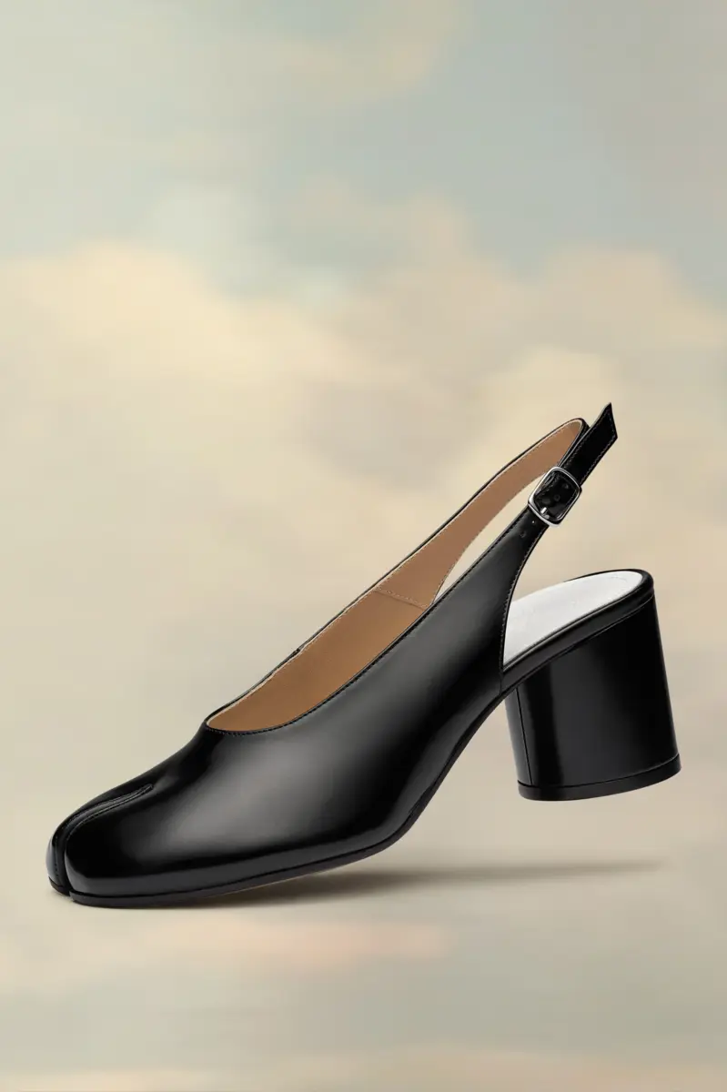 Estos zapatos slingback con tacón de bloque están confeccionados en piel cepillada y tienen una tira fina ajustable y una costura característica en la parte trasera. Presentan la puntera dividida Tabi, inspirada en el tradicional calcetín japonés del siglo XV que lleva el mismo nombre, lanzado para la colección de debut de la Maison en 1989. Captura el espíritu vanguardista e insubordinado de la Maison y existe como un clásico heredado, continuamente explorado a través de cada colección.