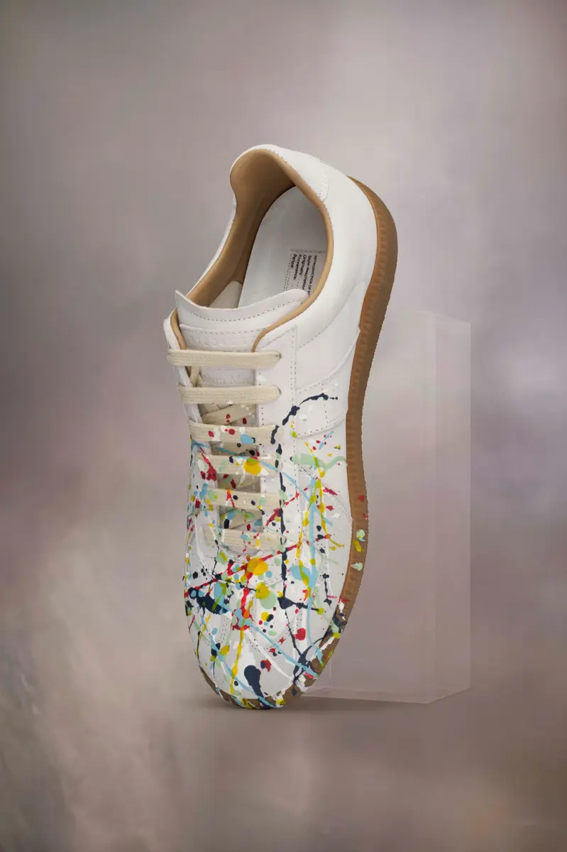 Las zapatillas Replica de piel nobuk y terciopelo presentan un diseño con salpicaduras de pintura. Las icónicas zapatillas Replica de la Maison se inspiran en el calzado deportivo austriaco de los años setenta. Los detalles de las Replica se renuevan continuamente según las inspiraciones de la temporada.